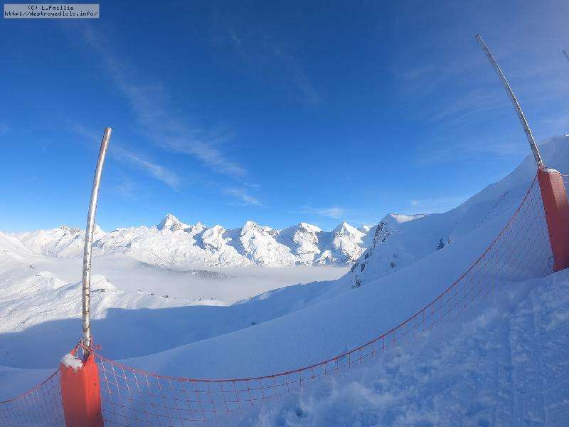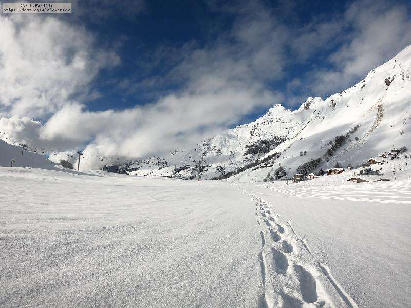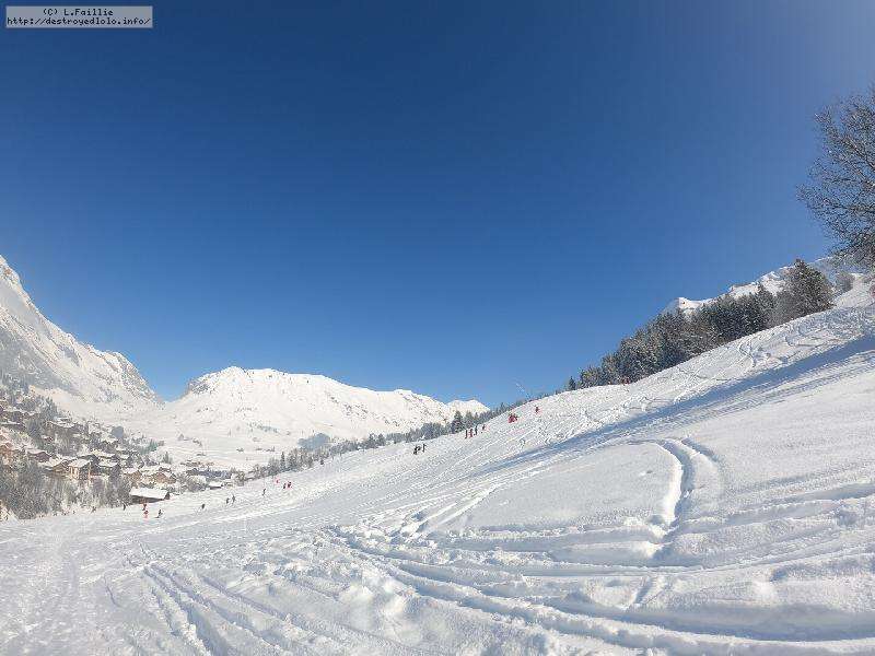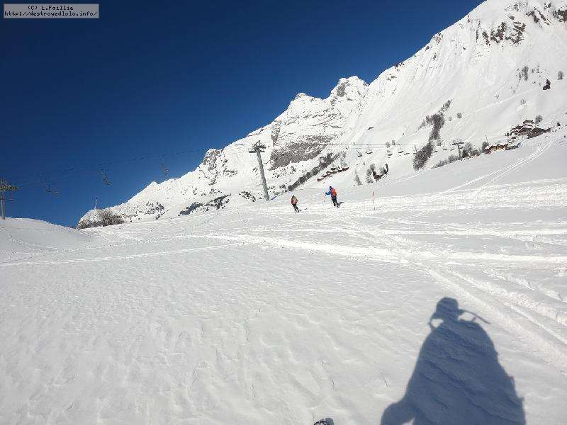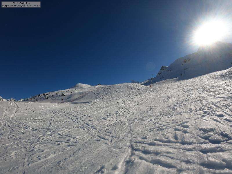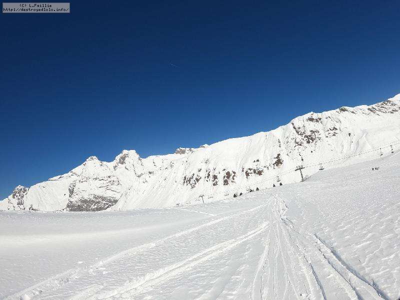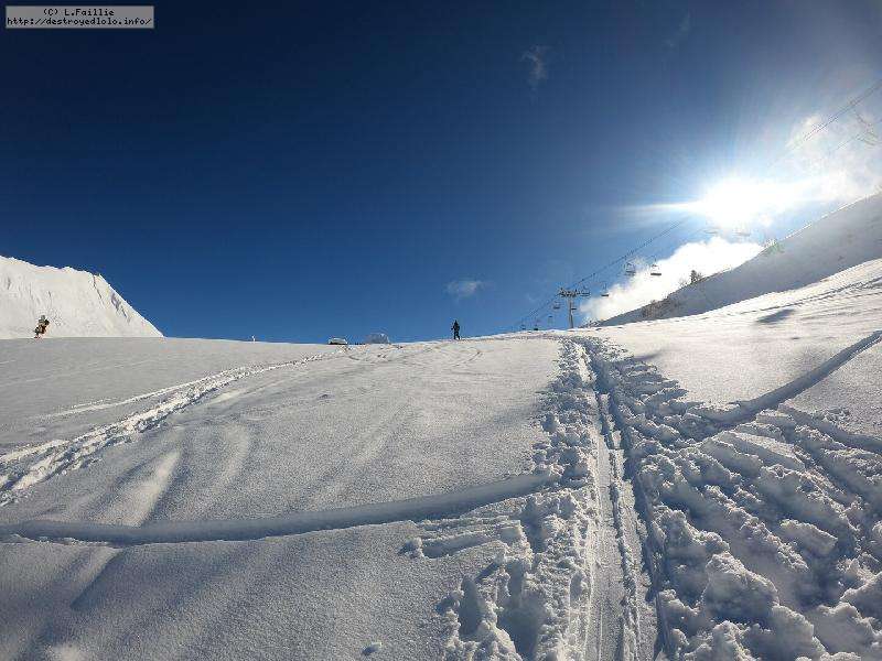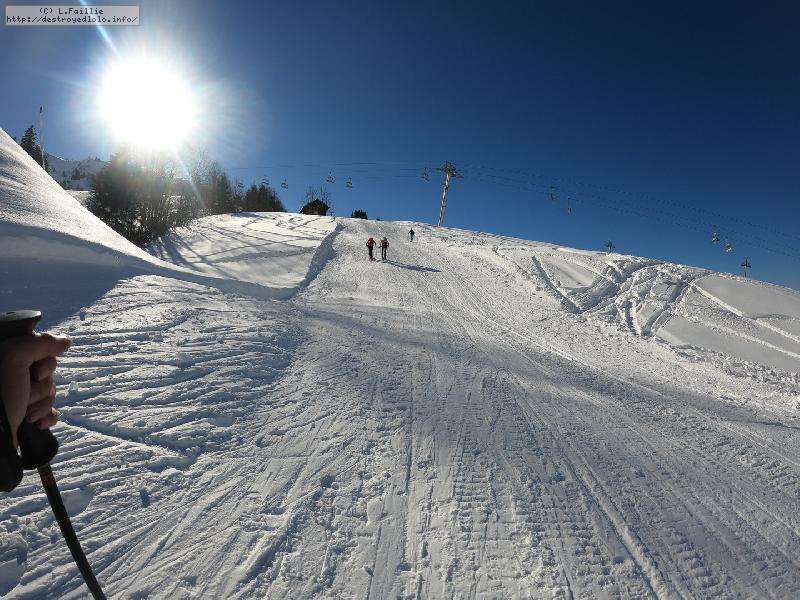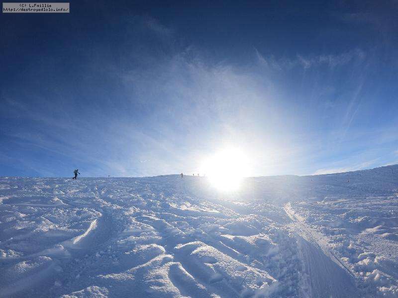 Alors même si les photos font croire que la neige est bonne, ce n'est qu'une illusion, à peine une sensation ... à chier ! Mais nous aurons quand même une belle descente : merci à la station d'avoir damé.