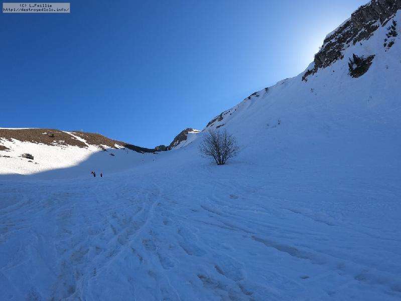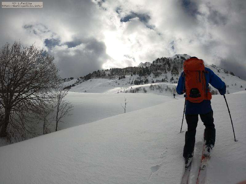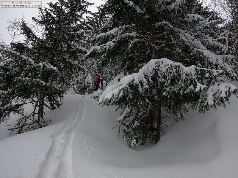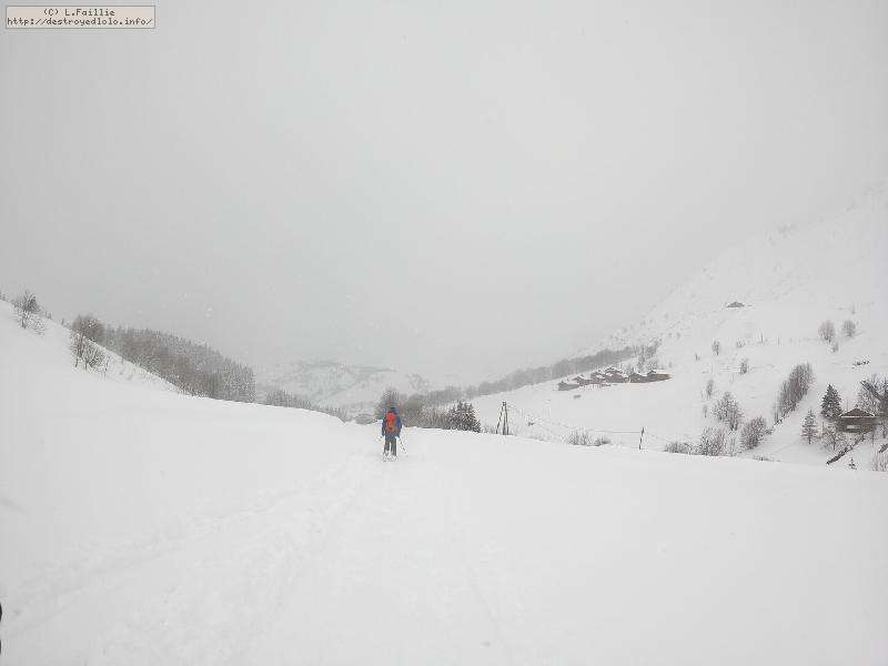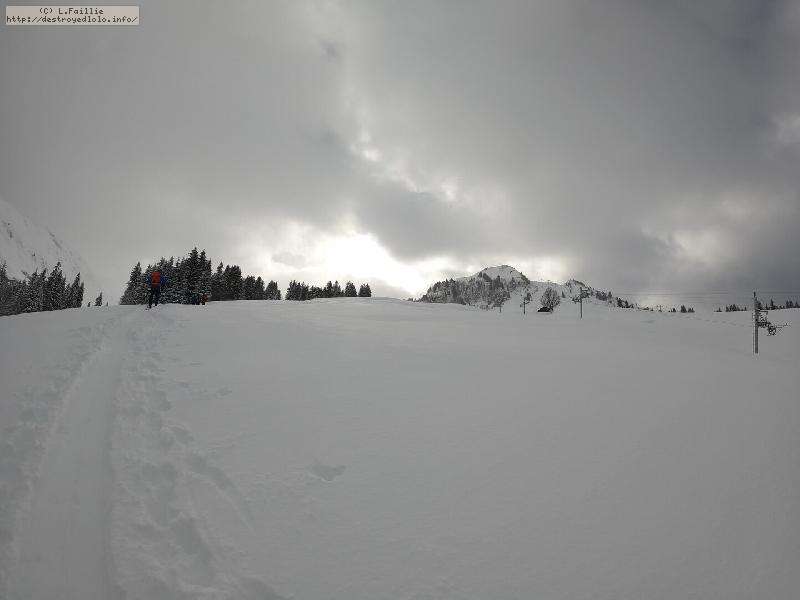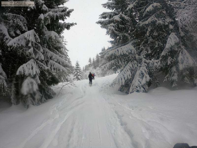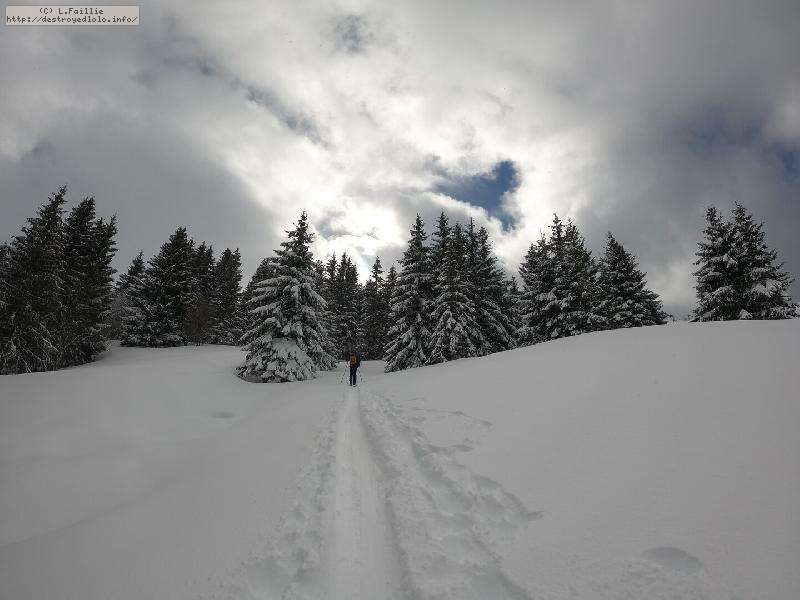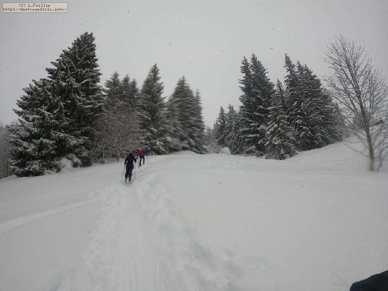 Il a neigé dans la nuit, et en fait, ça continue lorsque nous arrivons : le Lachat étant complètement bouché (et ses pistes détruites par les paysans), direction le Maroly pour un moment d'extase spatulaire.