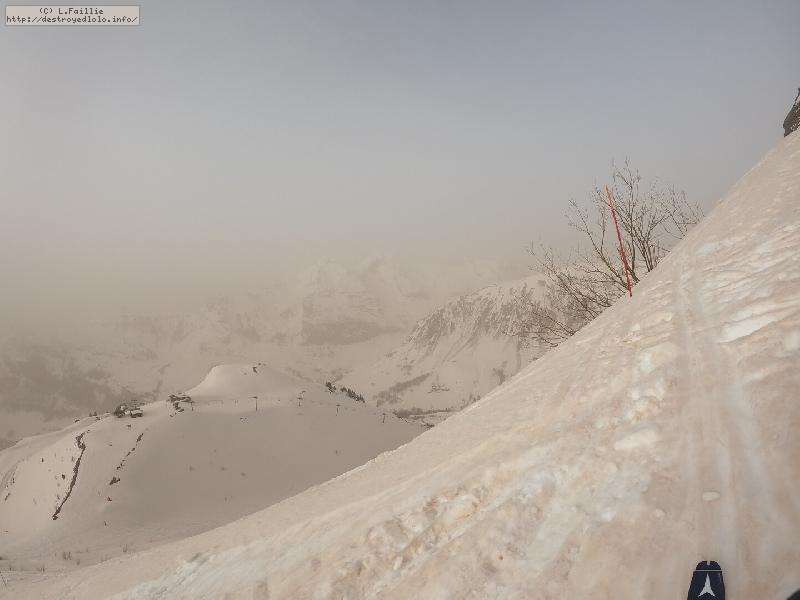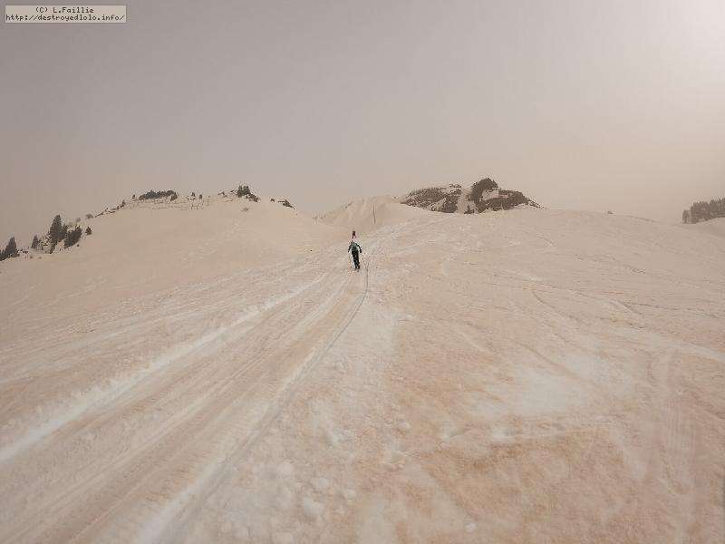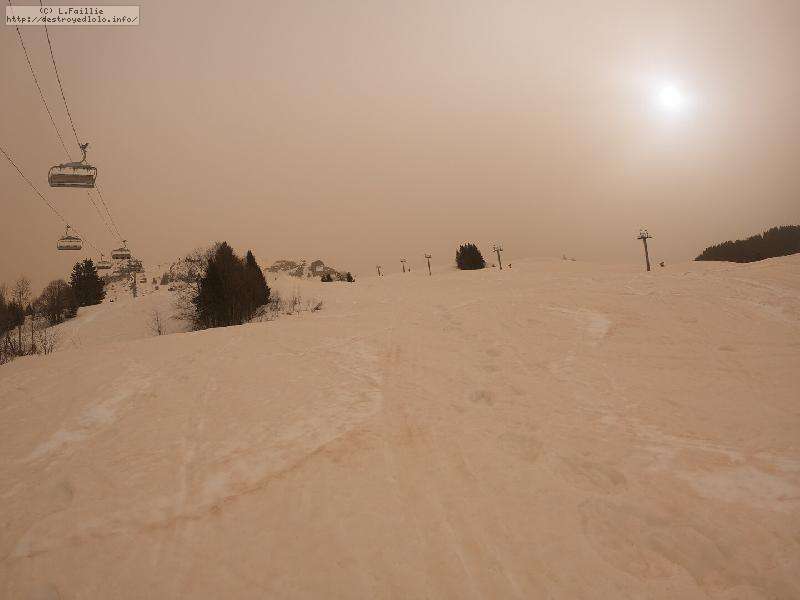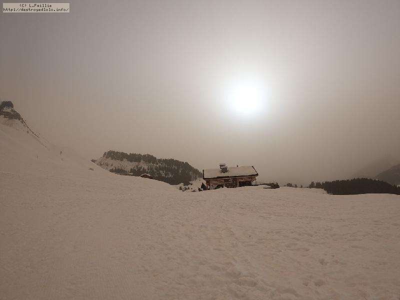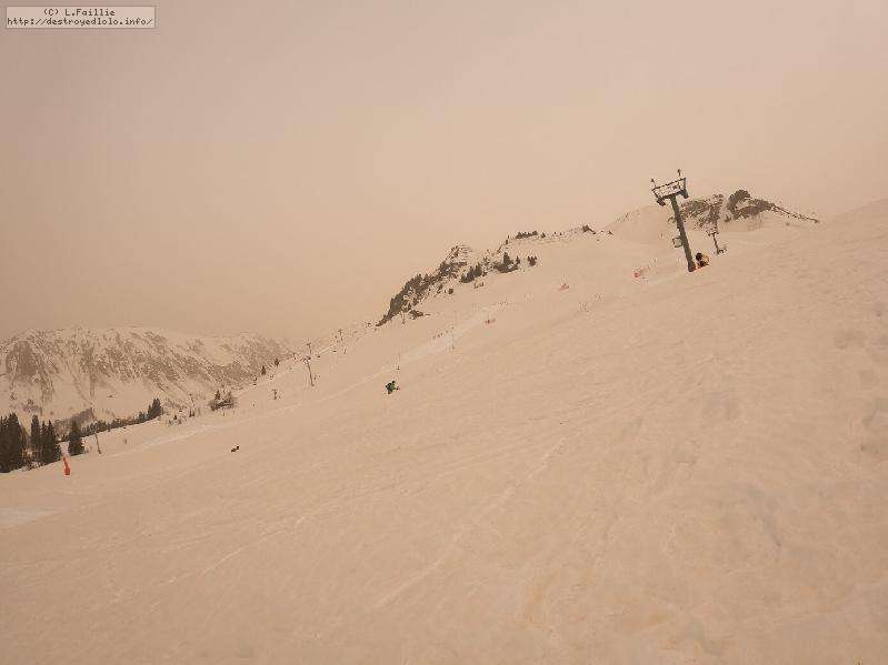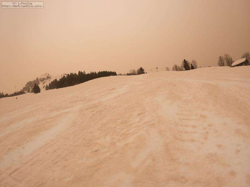 Lumière blafarde, neige orange, bref, ambiance étrange toute la journée : le Sahara a décidé de prendre ses quartiers d'hiver. Direction le Lachat.