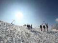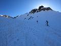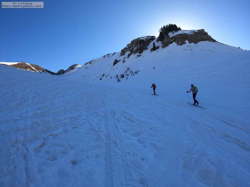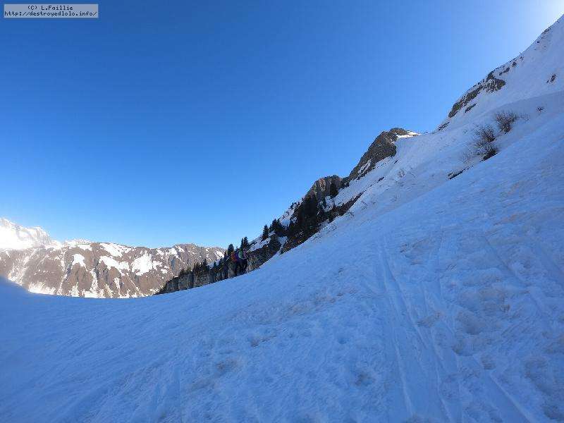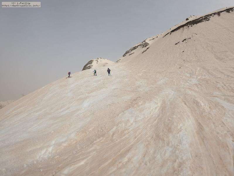 Direction : le Lachat. Toujours un grand flux de sud qui réchauffe les températures : la neige est un mélange de soupe où il y a du passage et de glace ailleurs ... avec une mention spéciale pour le mur des Lanches très très verglacé : la montée sera épique.