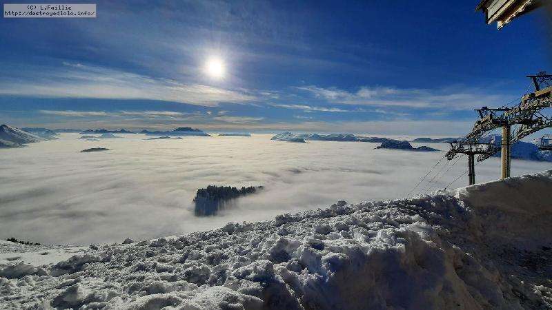 Il a neigé ce qui redonne une couleur blanche au Lachat avec une petite couche bien sympathique. Descente par la noire ... mais les nuages nous attendent en bas.