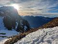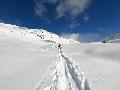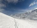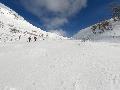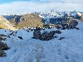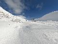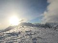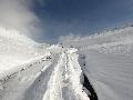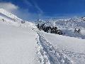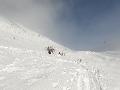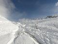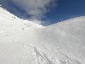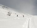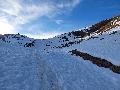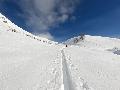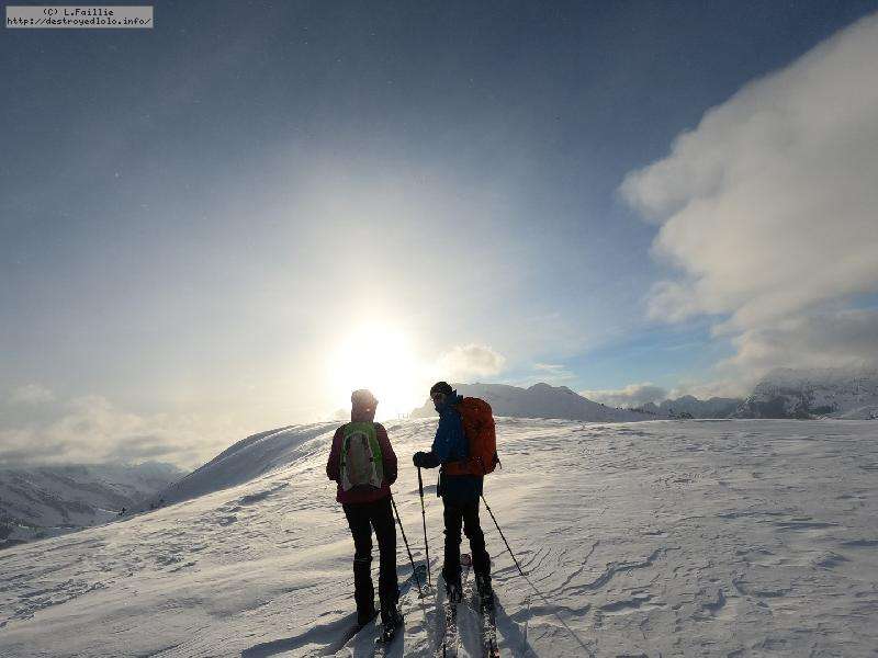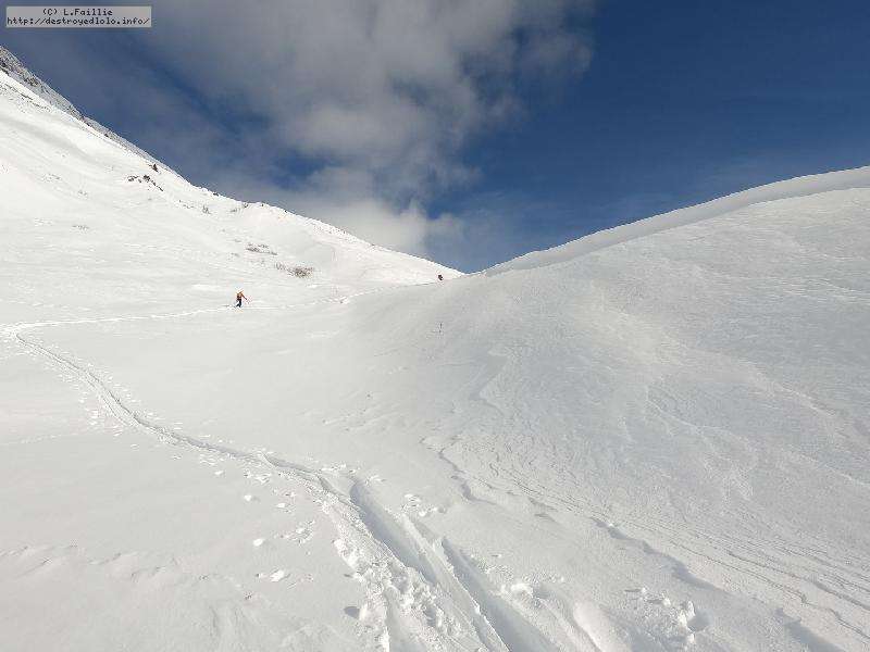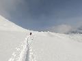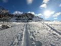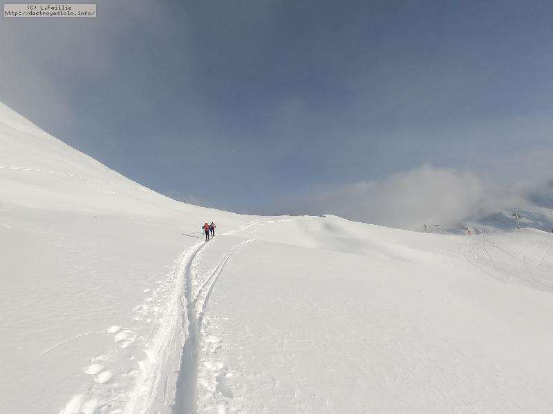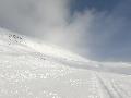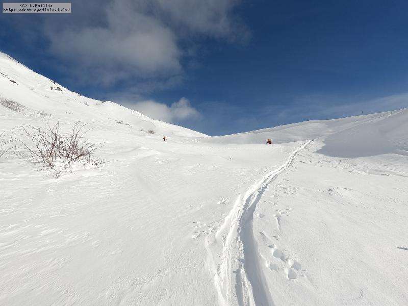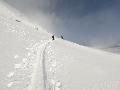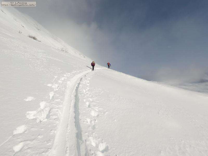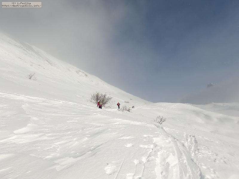 L'ambiance devient glaciale en haut avec beaucoup de vent : la neige devient crouté sur les pentes et complétement verglacée sur les crêtes.