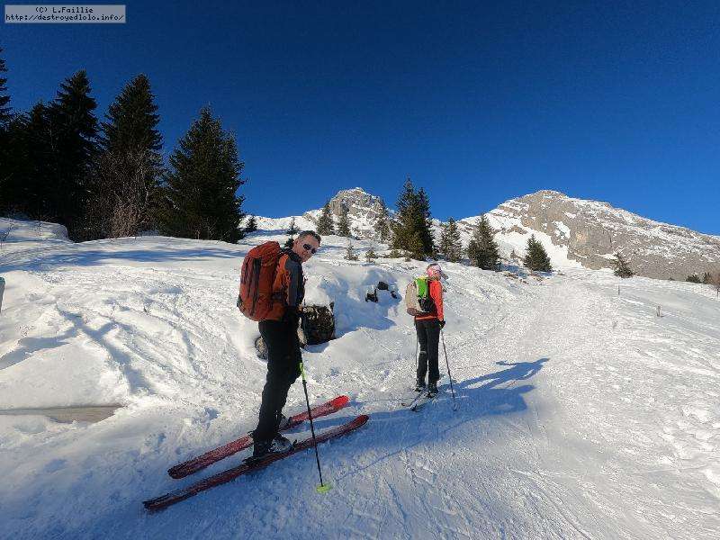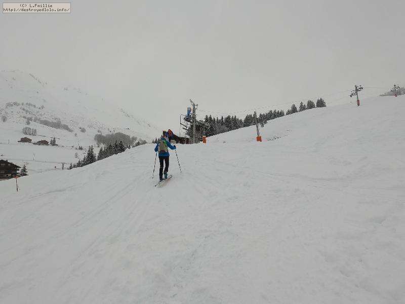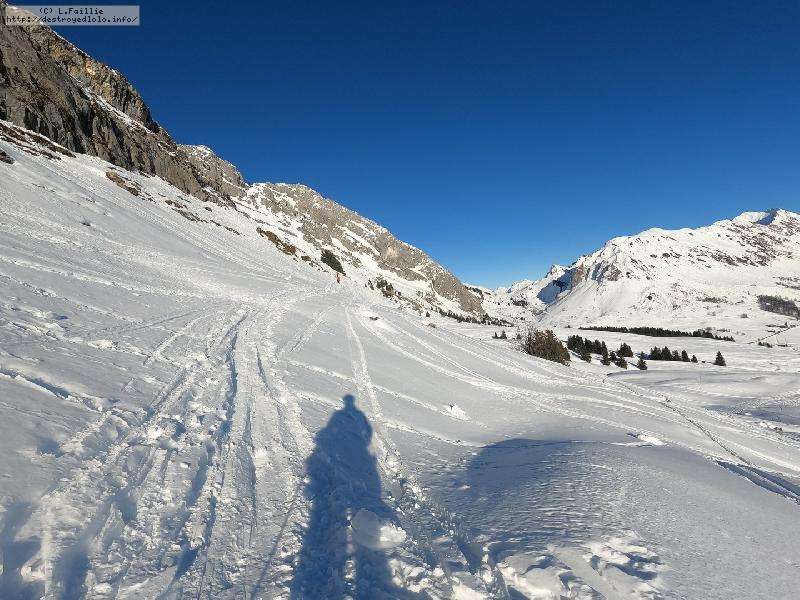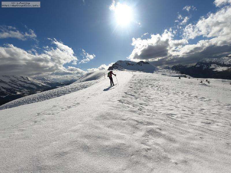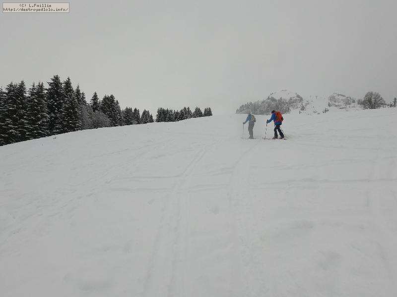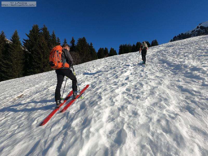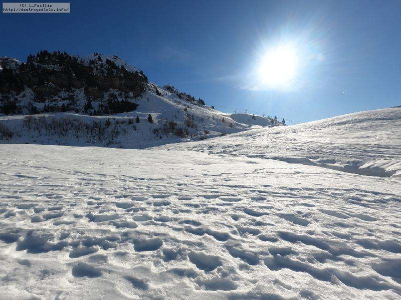 Malheureusement, la neige tombée en abondance sur Annecy n'est pas arrivée en station : alors même si la couche reste abondante, les parties exposées sont bien croutées et verglacées. Qu'importe, direction le Col sur le Freu à défaut d'avoir le temps de pousser jusqu'au sommet du Roc des Tours.