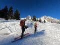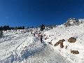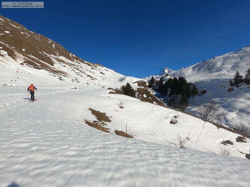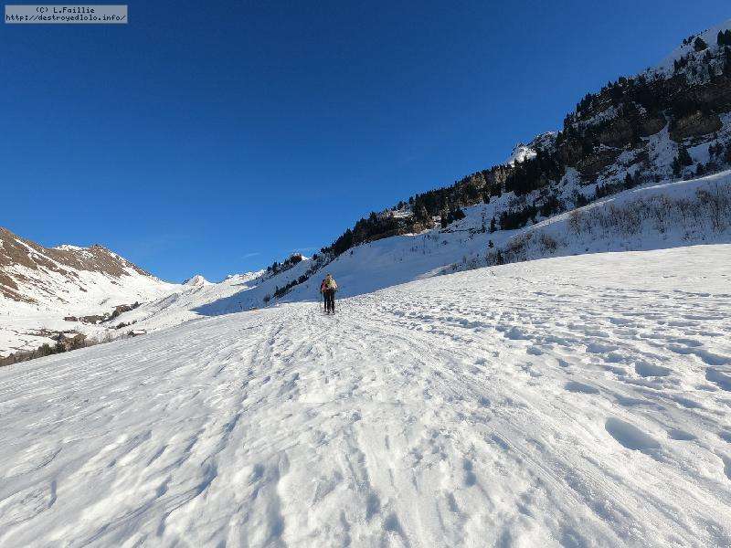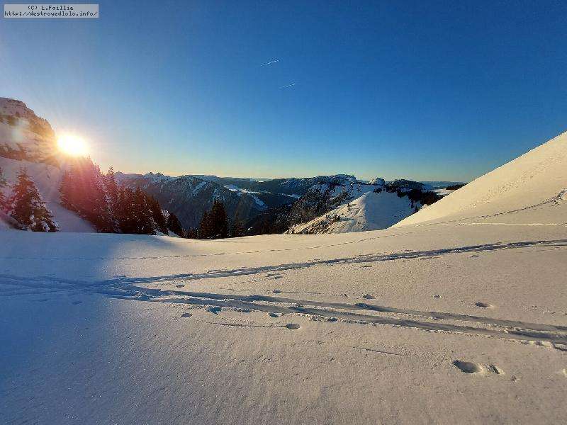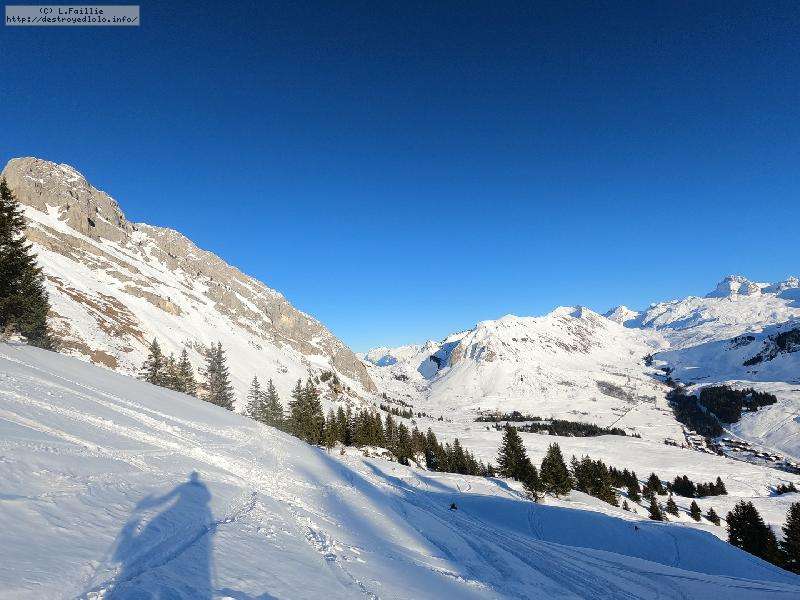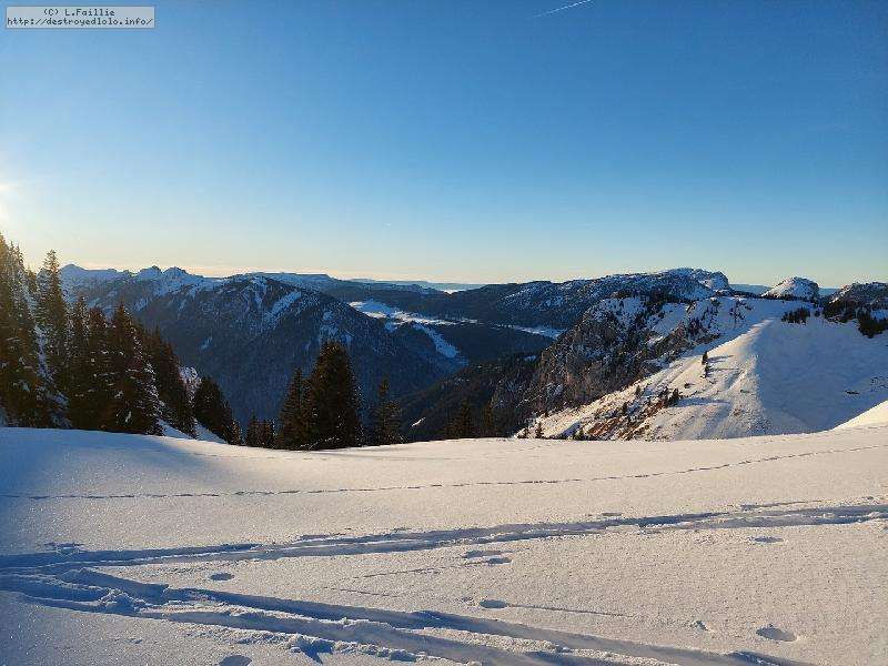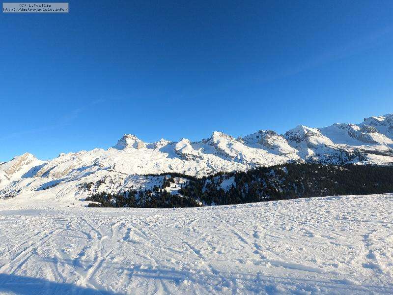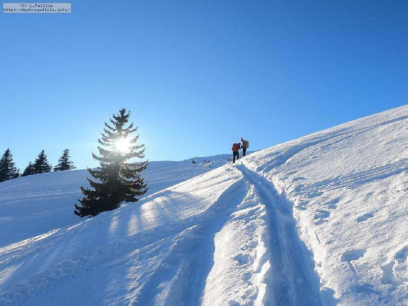 Malheureusement, la neige tombée en abondance sur Annecy n'est pas arrivée en station : alors même si la couche reste abondante, les parties exposées sont bien croutées et verglacées. Qu'importe, direction le Col sur le Freu à défaut d'avoir le temps de pousser jusqu'au sommet du Roc des Tours.