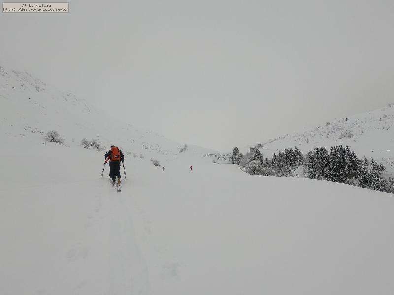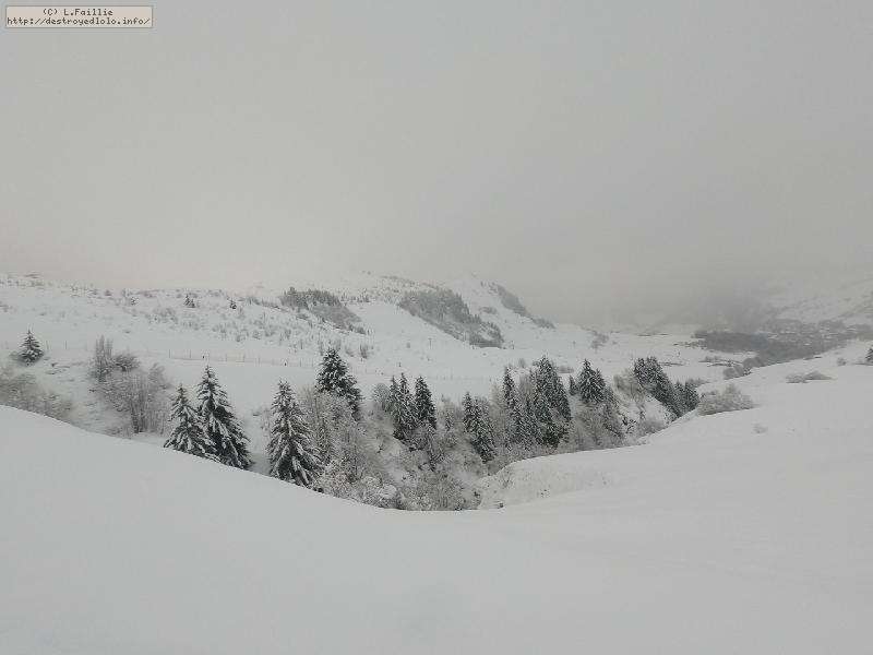 Il a plu beaucoup ces derniers temps, mais avec un isotherme 0 très (trop) haut. Heureusement, l'hiver arrive et c'est sous les flocons que nous entamons cette rando tardive. Cependant, la neige reste très mouillée au niveau du Chinaillon, et c'est même du gros sel sur les pistes.