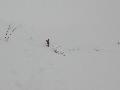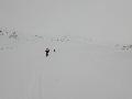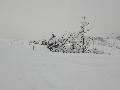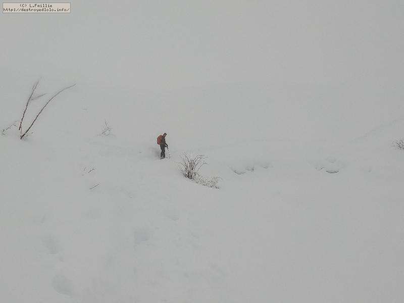 On rejoint les nuages au bas du téléski de Almet, et la trace, qui d'habitude suit le ruisseau, grimpe drè dans l'pendu cette année. Et en plus, un guignol a complétement détruit la trace en la suivant ... à pied. Mouai, faut quand même le vouloir avec de la neige jusqu'aux genoux, mais bon ...