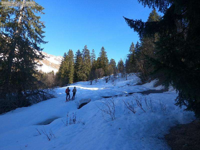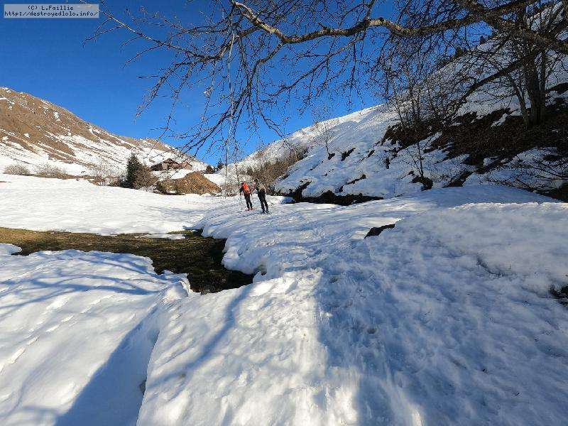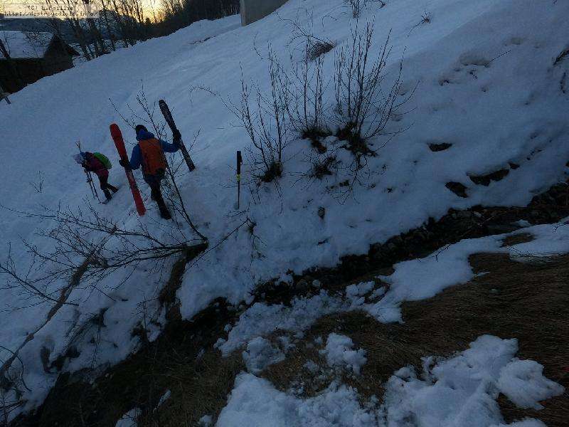 Avec les températures de ces derniers jours, il ne fallait pas s'attendre à des miracles. Arrivée sur place, plus de neige au Chinaillon, on monte par le bord de la verte.