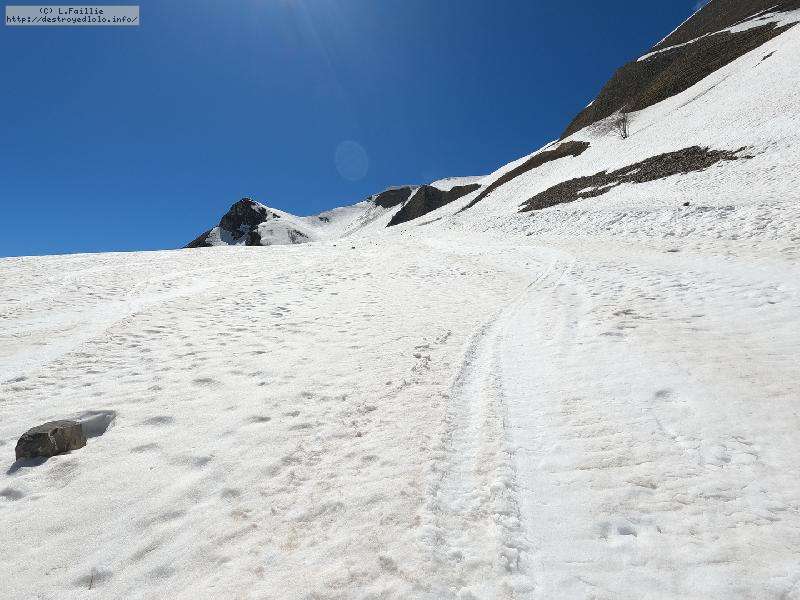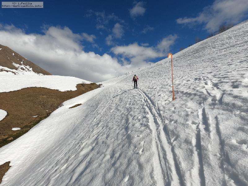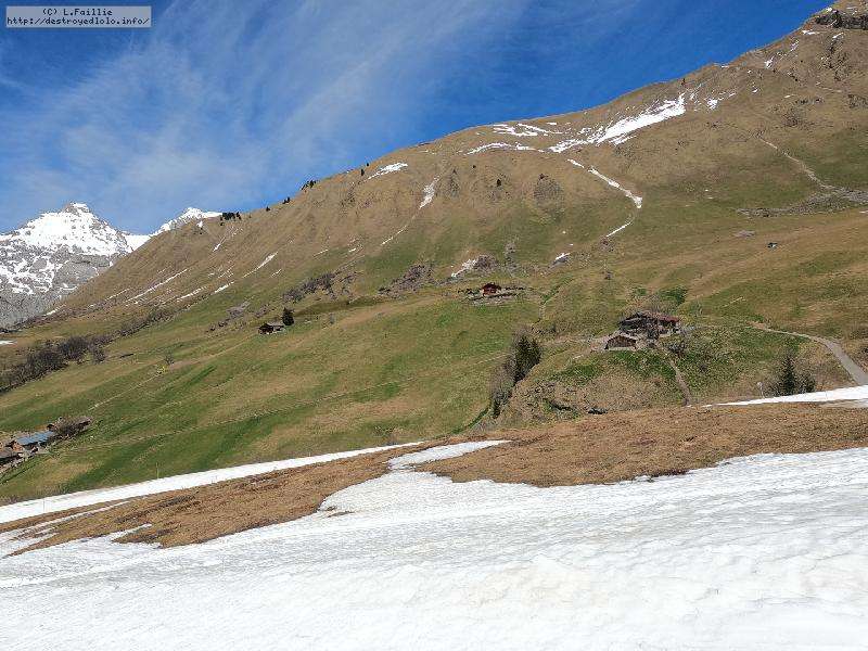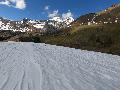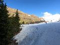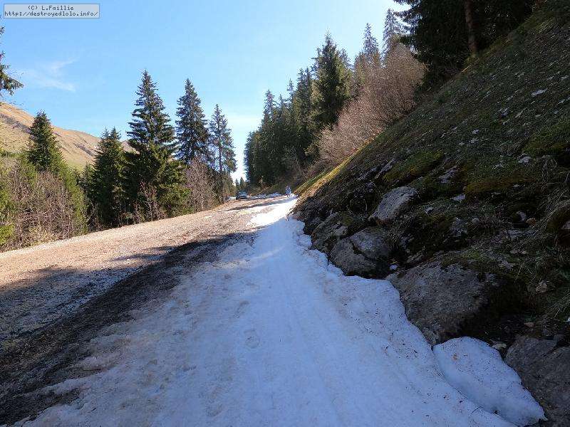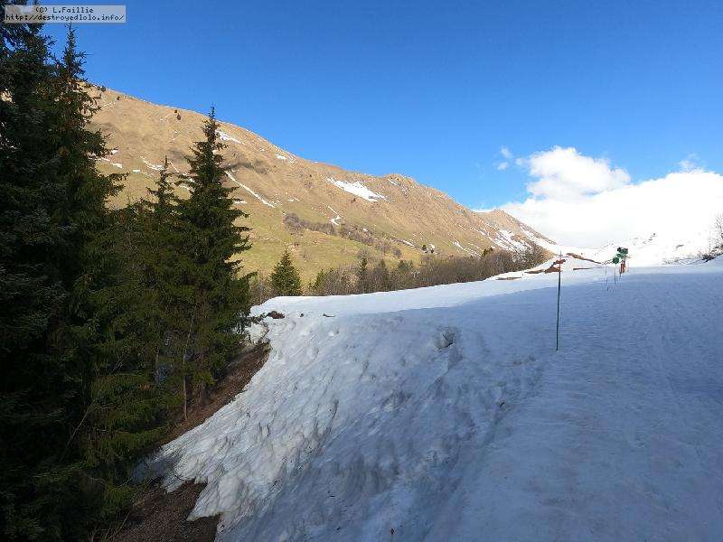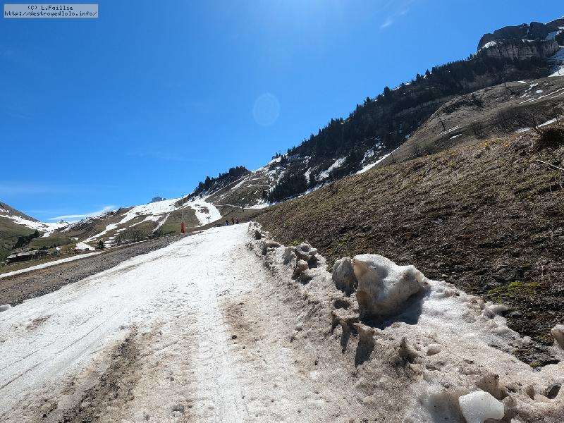 En fait, ce n'est pas si pathétique que ça, car la limite herbe / neige est franche et donc ... ca passe à la montée. Quelques heures plus tard, à la descente, la limite est encore remontée de quelques dizaines de mètres (le passage des voitures / bus n'aidant pas).
