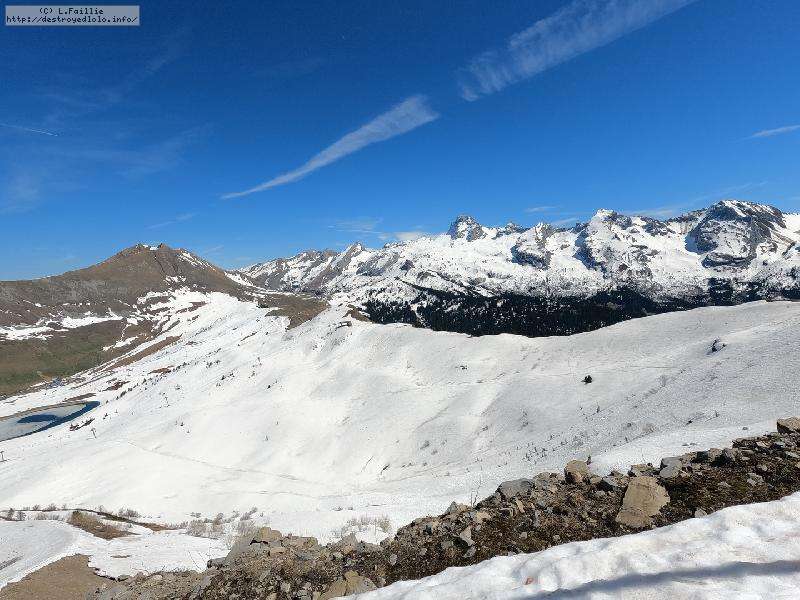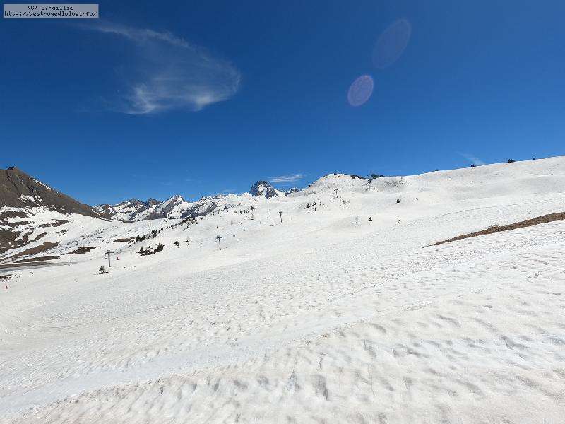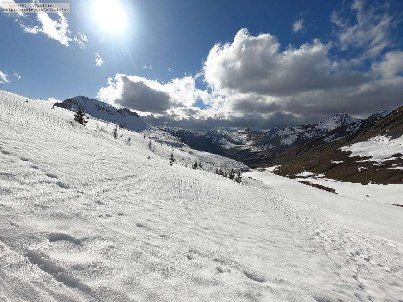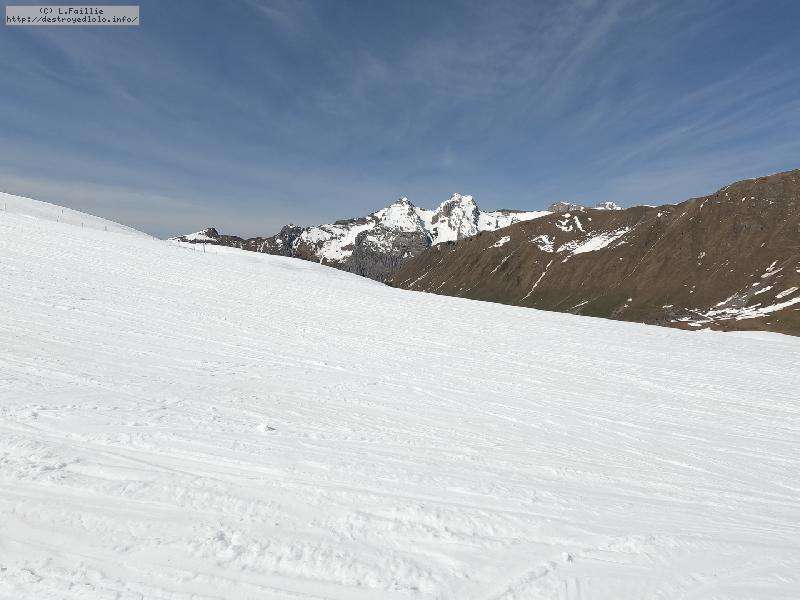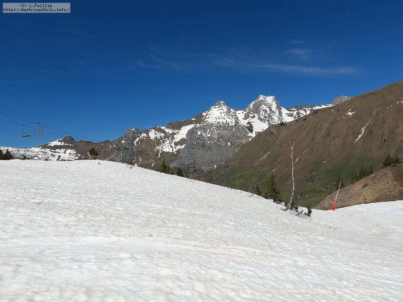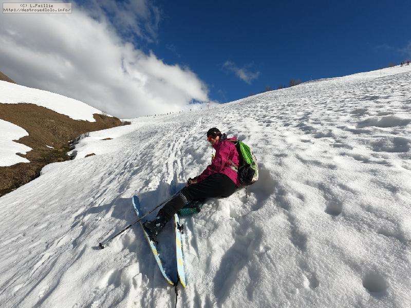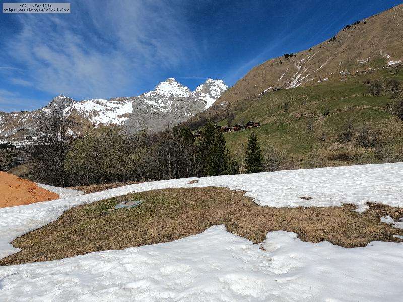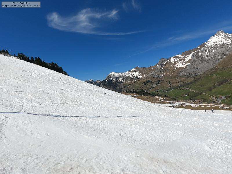 26° au Chinallion, ça sera évidemment de la soupe partout, mais pas si mal que ça. Et malgré les plaques de terre qui apparait de plus en plus (surtout sur les pistes), il reste quand même une belle couche qui laisse un peu d'espoir pour continuer à sortir les peaux un peu de temps. Mais des que la station fermera et que les dameuses ne passeront plus, il faudra sans doute porter jusqu'au Maroly.
