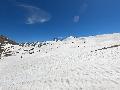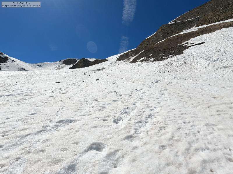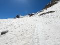 Sur le haut, c'est encore pire : une croute de glace, une couche de vite suite à la fonte avec des ... stalactites de glaçons, de la coffe en dessous : étrange sous les spatules, mais ça monte !