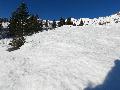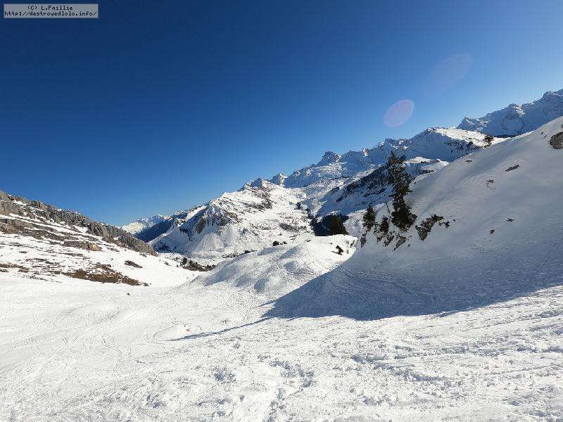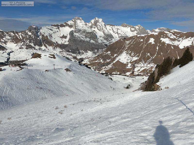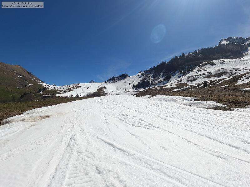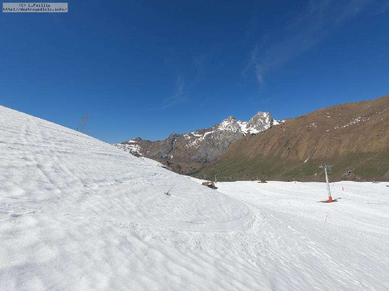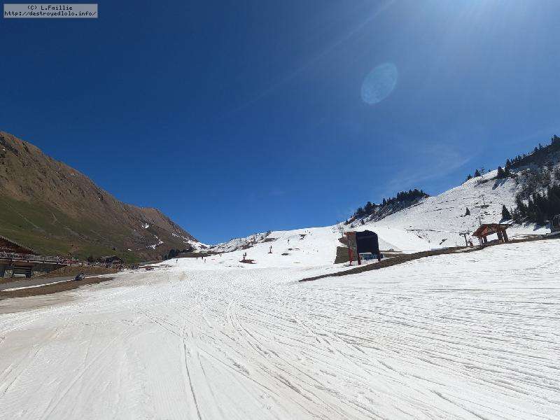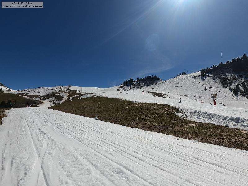 A voir les photos, on se croirait pas loin de la fermeture fin avril ... mais elles sont trompeuses : la neige est EXCELLENTE. Un chouille verglacée à l'ouverture, mais des 10h, elle devient ballienne que ce soit sûr et en dehors des pistes. Elle décaille mais sans se charger d'eau, c'est vraiment le pied.