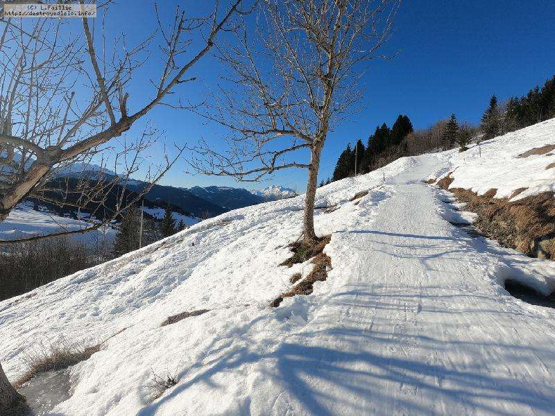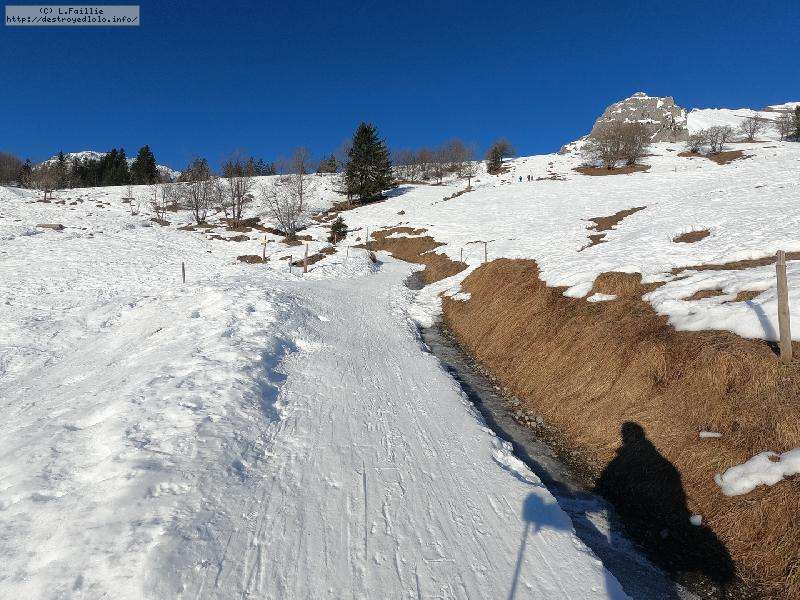 Comme on peut le voir, c'est là aussi tapis vert ... sauf sur les pistes où il reste une jolie couche : je passerai donc par leur bord. Beaucoup de randonneurs d’ailleurs.