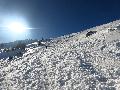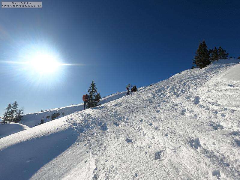 A partir disons d'1/3 du Maroly, ENFIN on peu sortir ... La neige est évidemment bien mouillée, mais pas collante non plus : la montée reste sympa et la descente encore plus (malheureusement, je ne l'ai pas en vidéo).