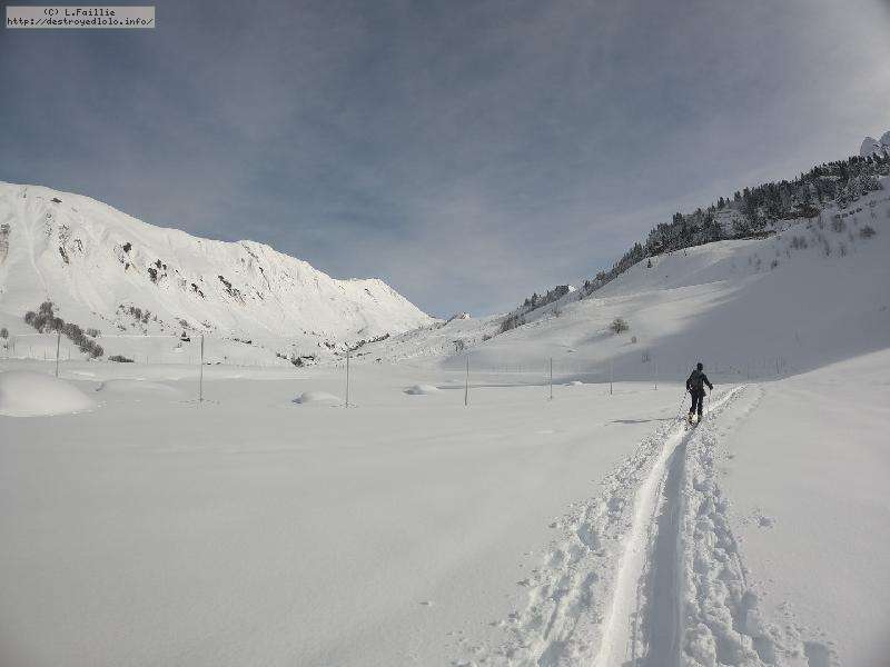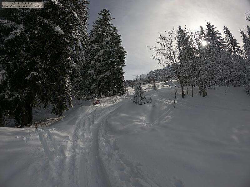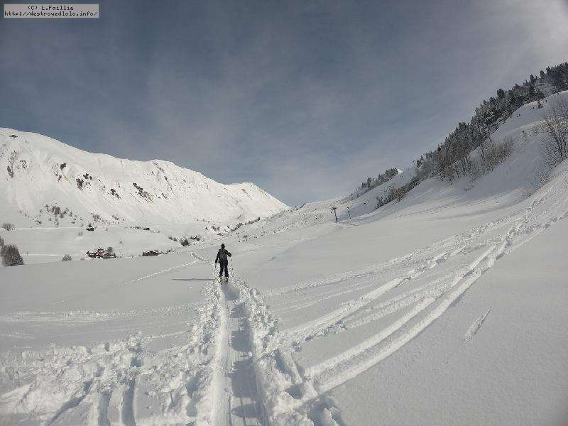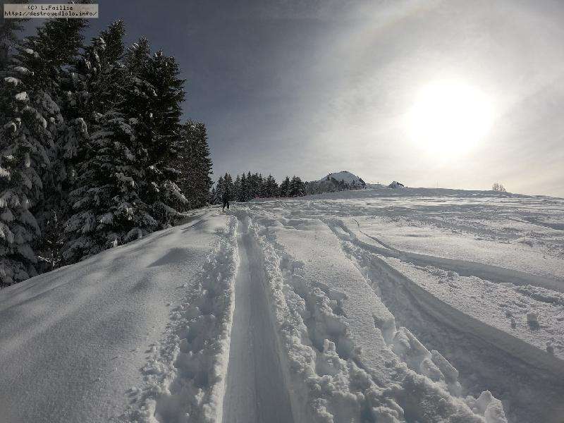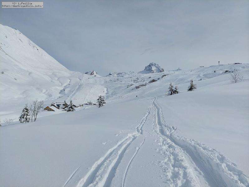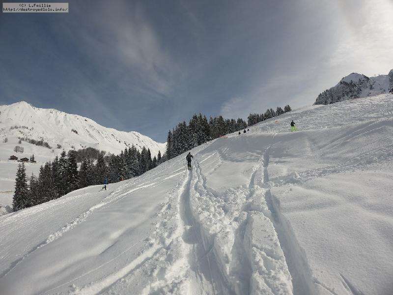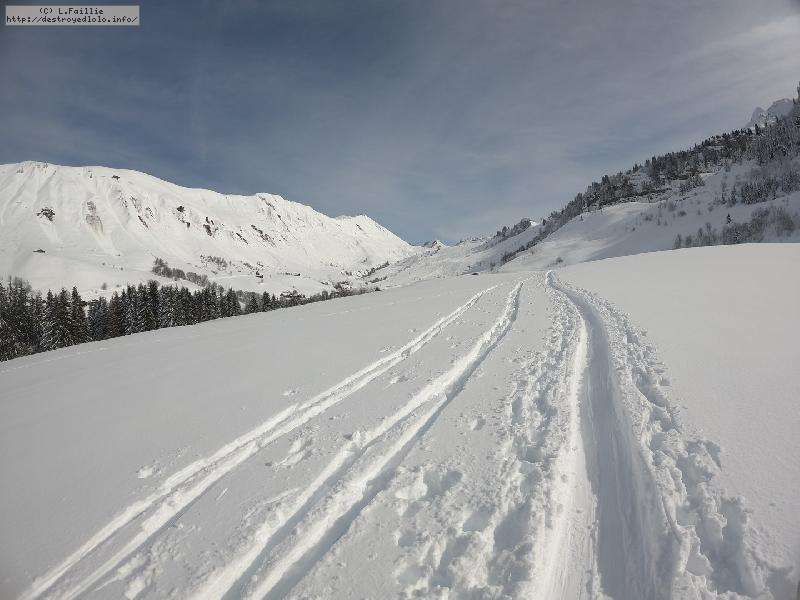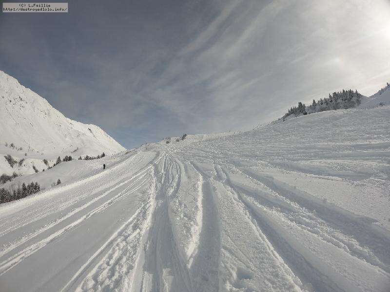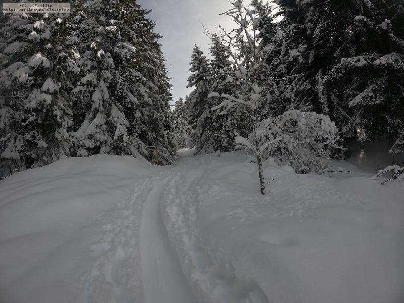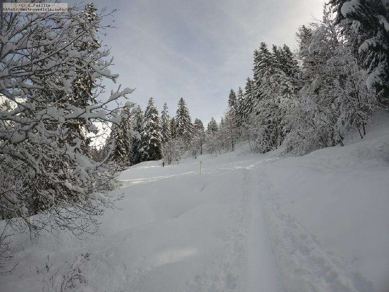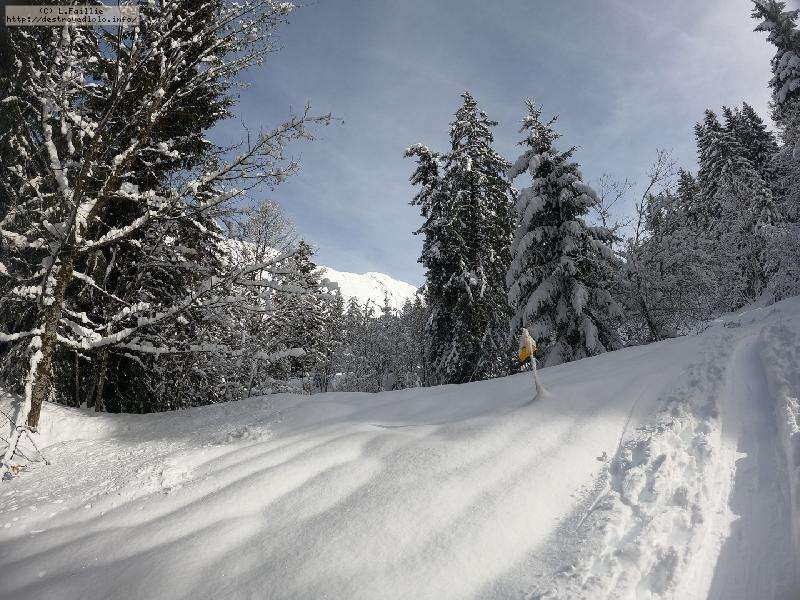 Après la tempête, risque 5/5 partout, alors on va la jouer "sécurité" : Itinéraire du col de l'Almet officiel, itinéraire sécurisée : d'habitude, je privilégie le chemin qui passe sous la pente à gauche, plus sauvage, plus loin des pistes ... mais vu le risque, vu que ça "dégueule" tous les 10m ... on va jouer la sécurité !