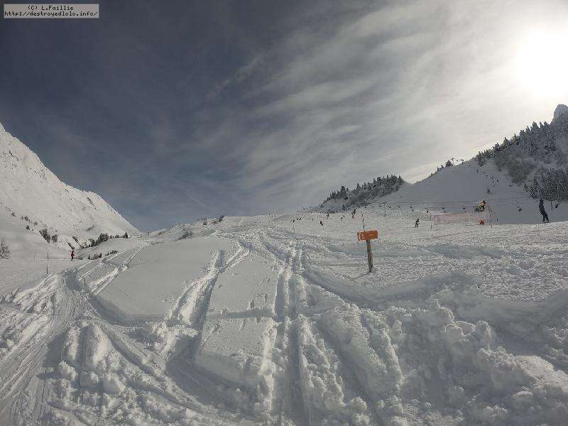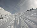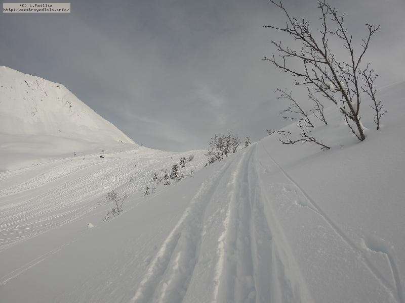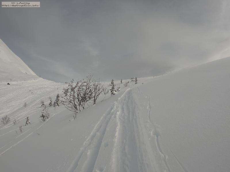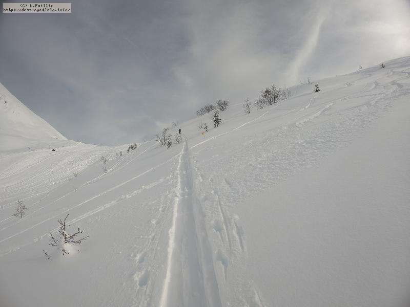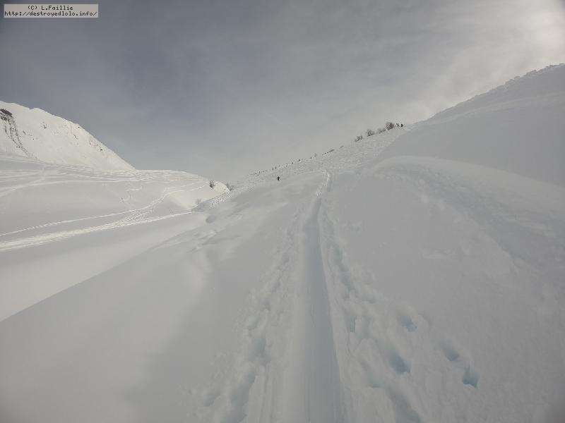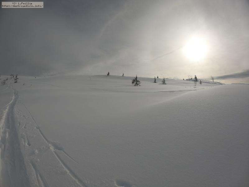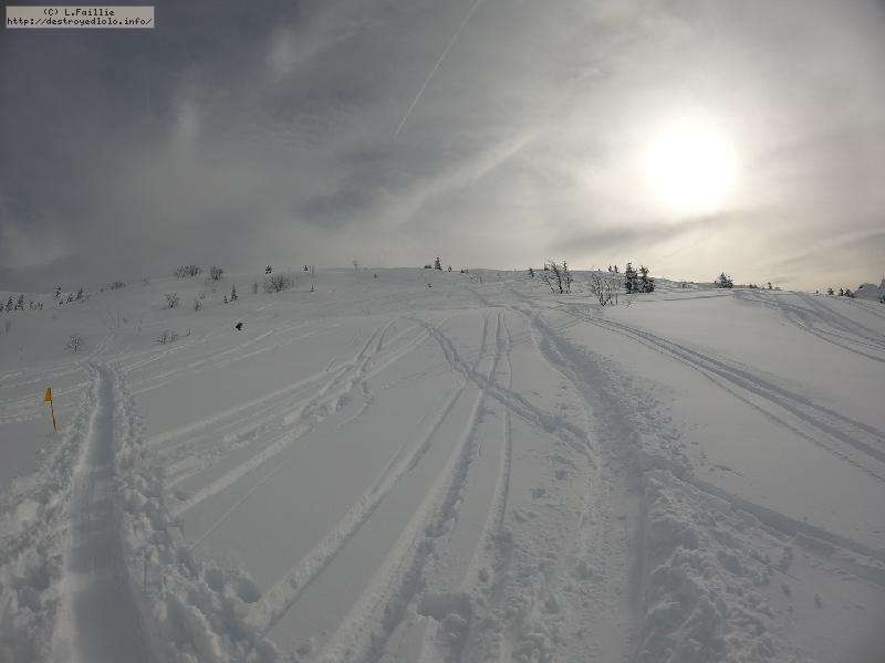 Couche de neige stratosphérique : je n'ai pas mesuré, mais quand on déchausse, y'en a jusqu'aux genoux ... et on ne touche pas le fond ! Par contre, elle est un peu plus lourde qu'attendue : j'ai "désabotté" 2 fois.
