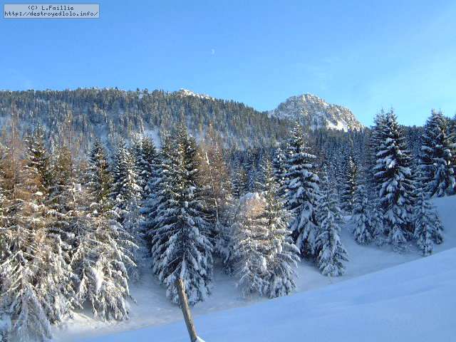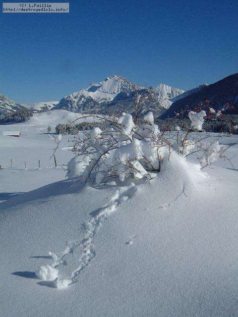 Grosses chutes de neige l'avant-veille : de la peuf, de la peuf, de la peuf ! En plus, grand soleil alors que la vallée est restée toute la journée dans le brouillard.