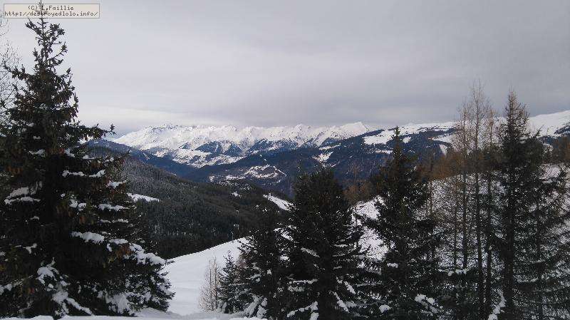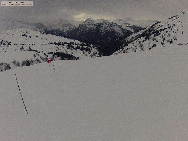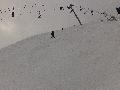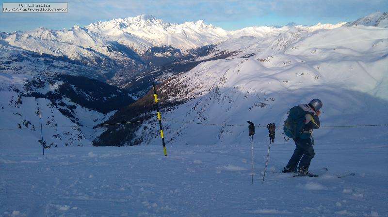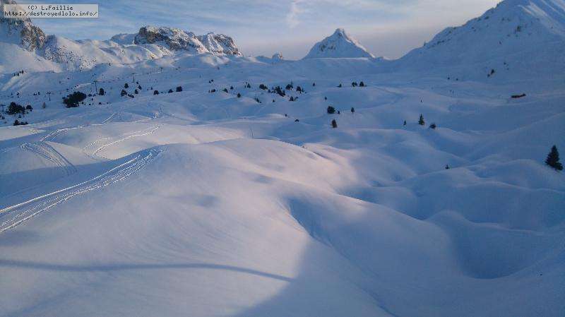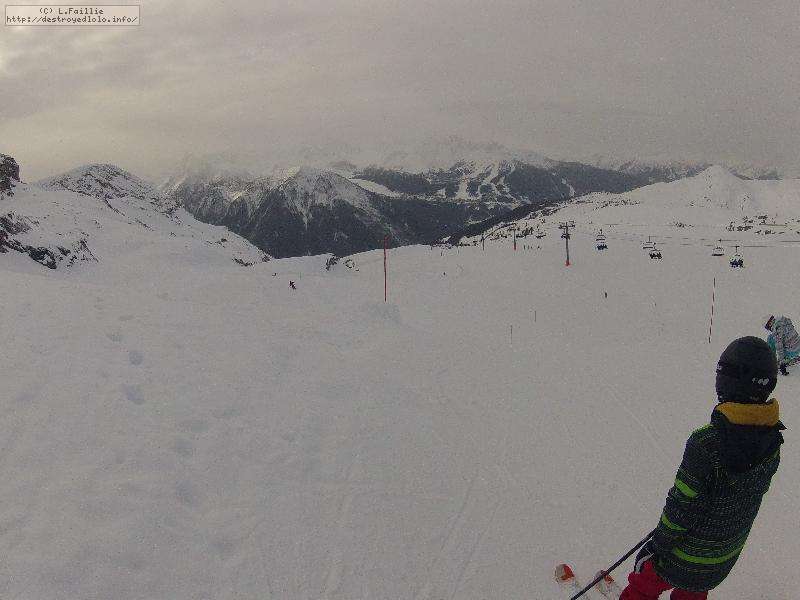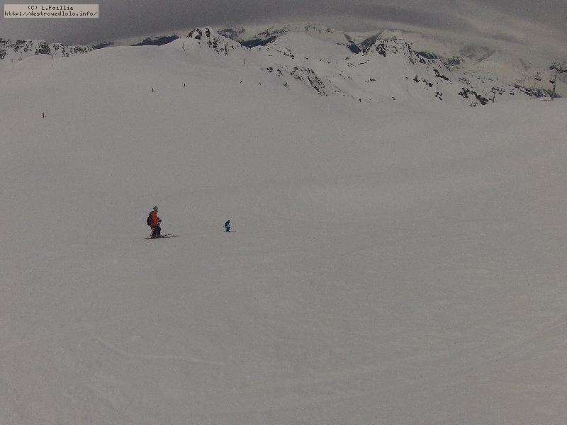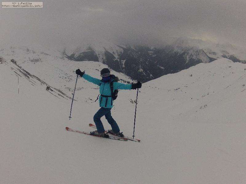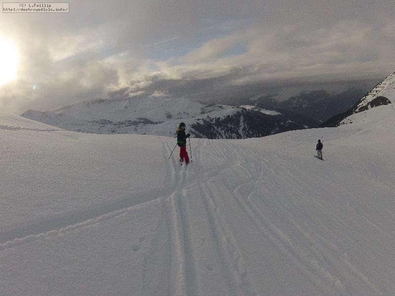 On s'attendait à un temps bien pourri : ok, ok, c'est loin d'être le grand soleil, mais le plafond restera suffisamment haut pour qu'on n'ai pas à se confronter à la purée de poix. Et les flocons qui tombent nous permettent d'avoir des hors-pistes bien sympa.