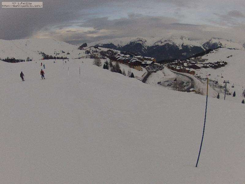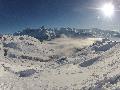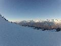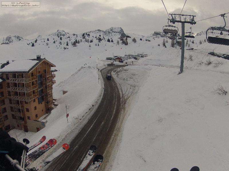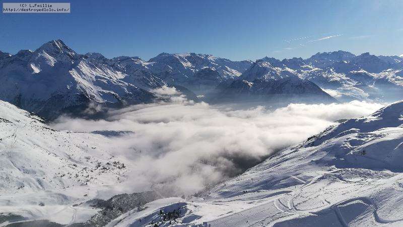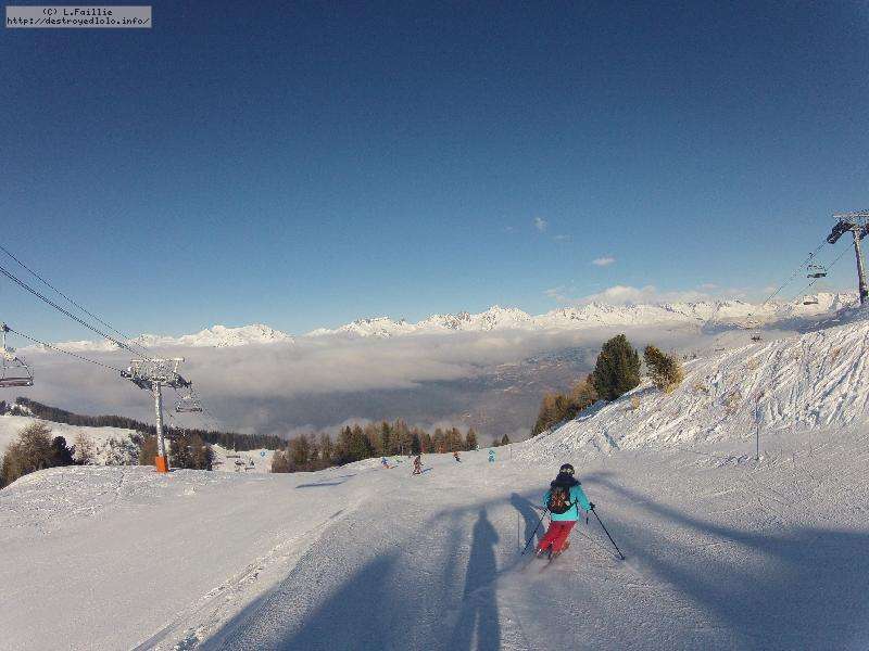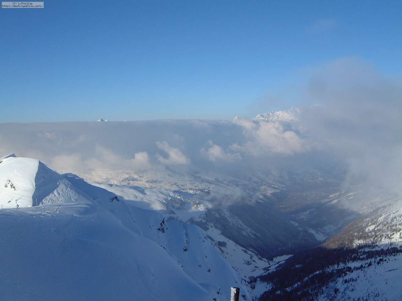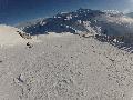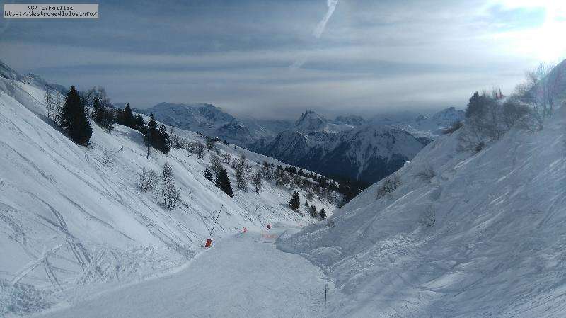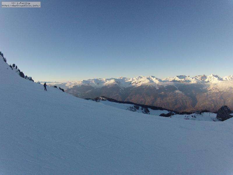 On s'attendait à un temps bien pourri : ok, ok, c'est loin d'être le grand soleil, mais le plafond restera suffisamment haut pour qu'on n'ai pas à se confronter à la purée de poix. Et les flocons qui tombent nous permettent d'avoir des hors-pistes bien sympa.