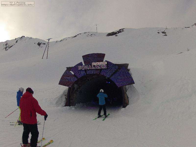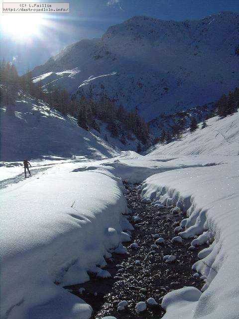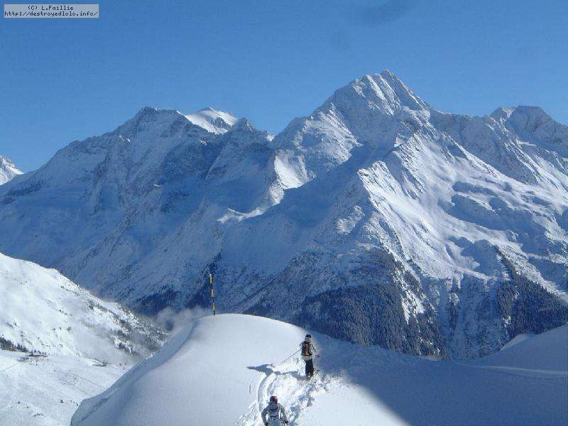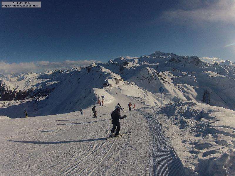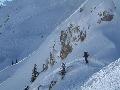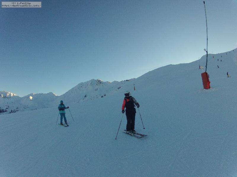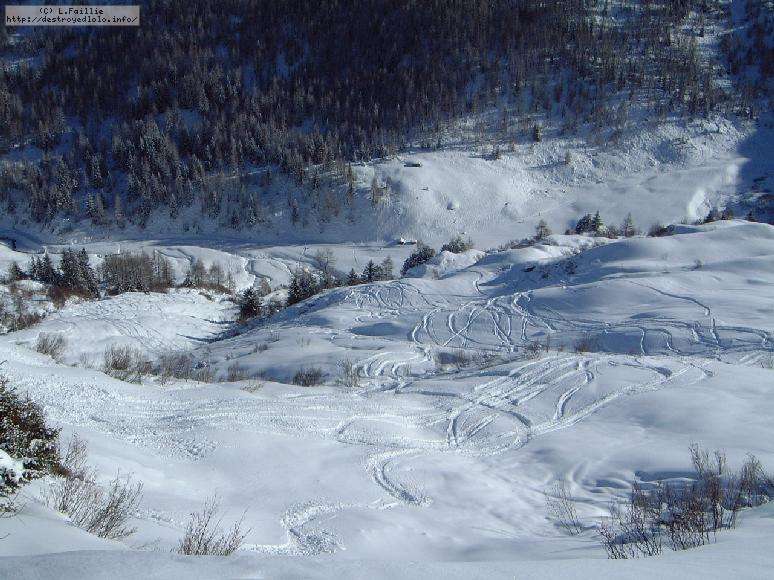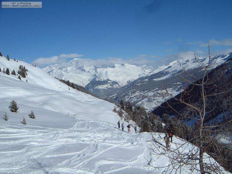 Le meilleur moment restera la liaison hors piste entre le bas de du télésiège du « Chalet de Bellecôte » et le bas de la piste des « crozats » oú Manu, Gé et Seb se risquent dans un goulet bien glacée ...
