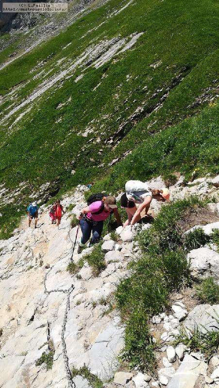 La montée n'est ni aérienne, ni trop technique ... hormis éboulements. Les endroits les plus pentus sont (étaient ?) équipés.