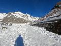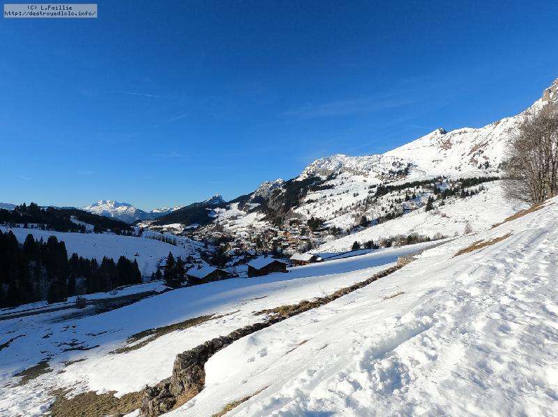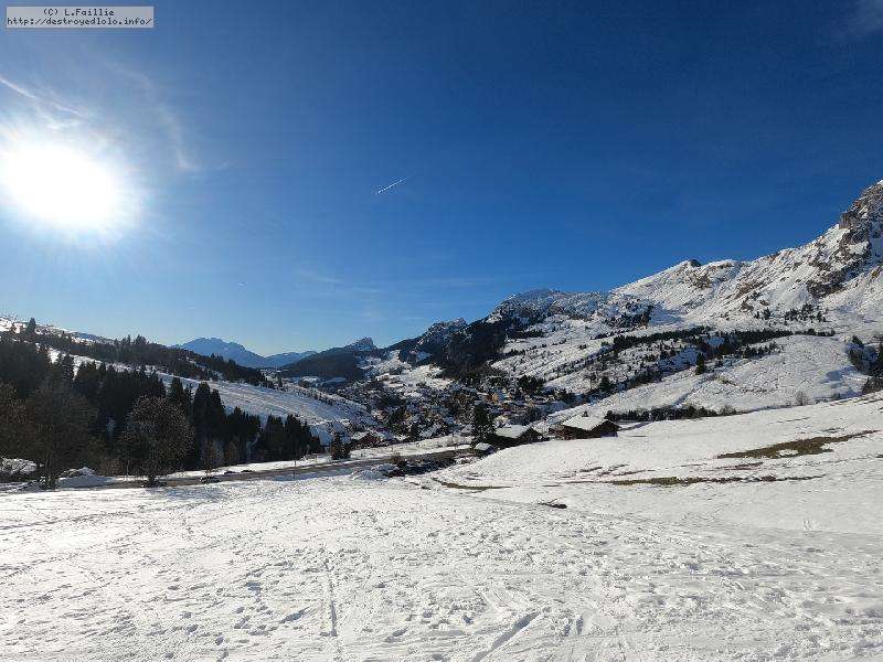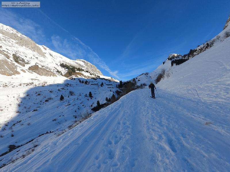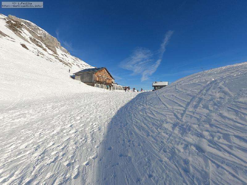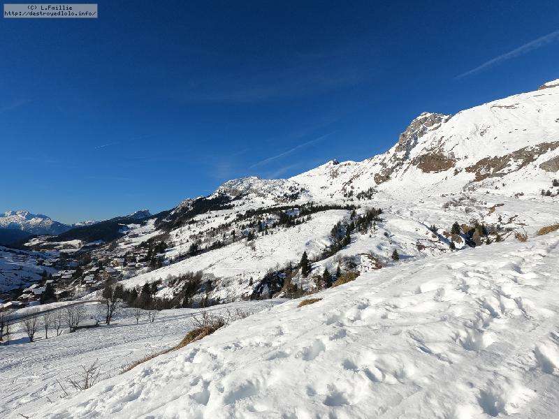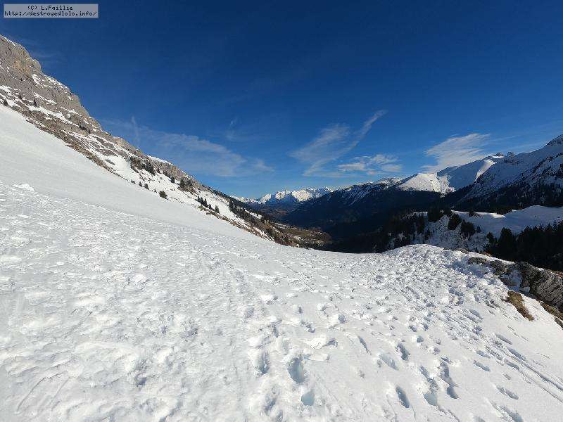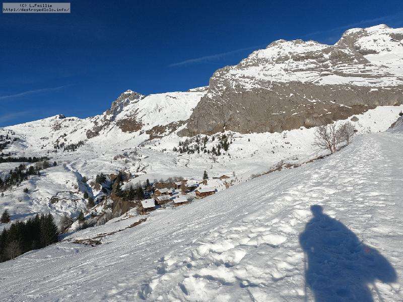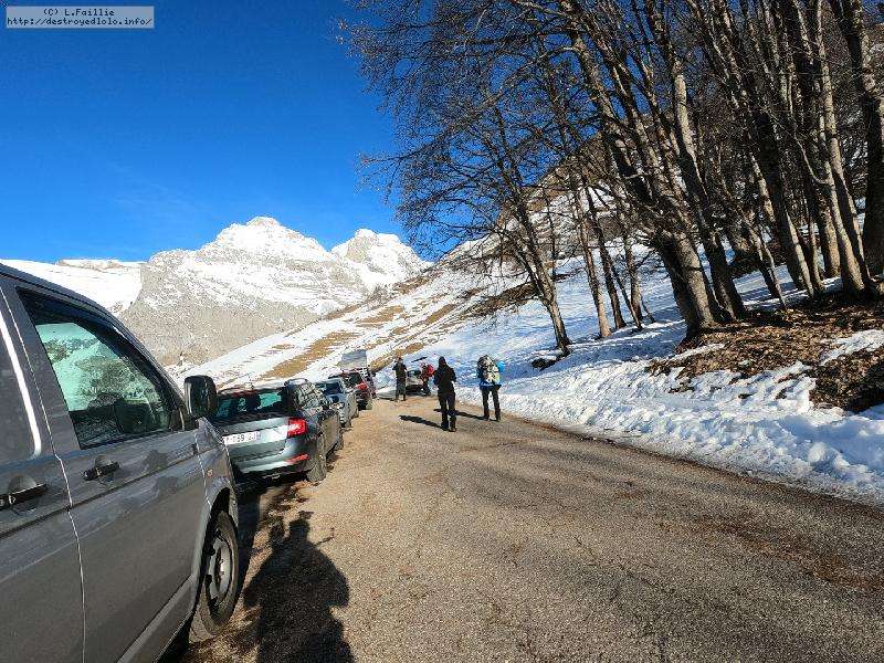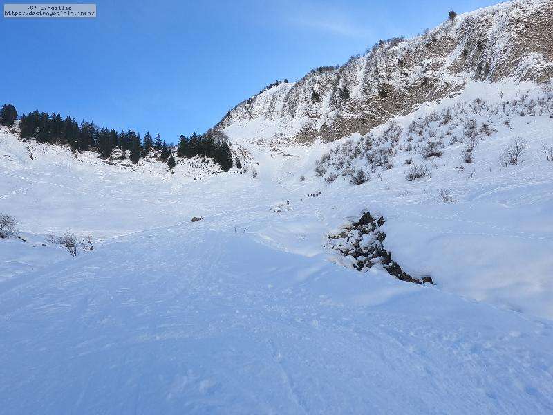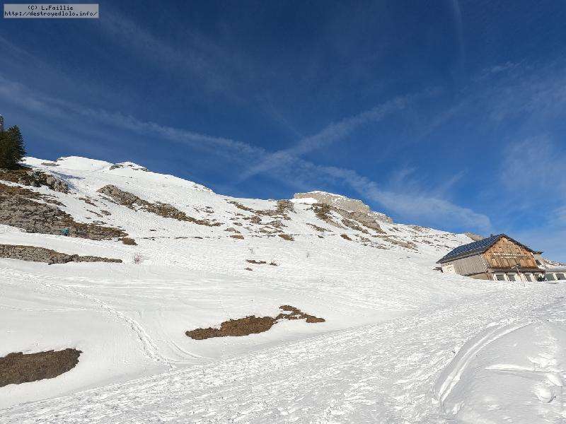 Lorsqu'il est enneigé, le Col de la Colombière est fermé et c'est de la fin de la route dont nous partirons, à la Sonnerie (bon courage pour s'y garer). Importante couche de ... glace : aucun risque que les skis s'abiment sur des requins ... mais les conditions de glisse s'en ressentent.