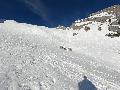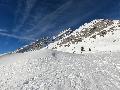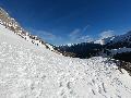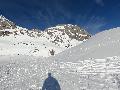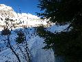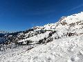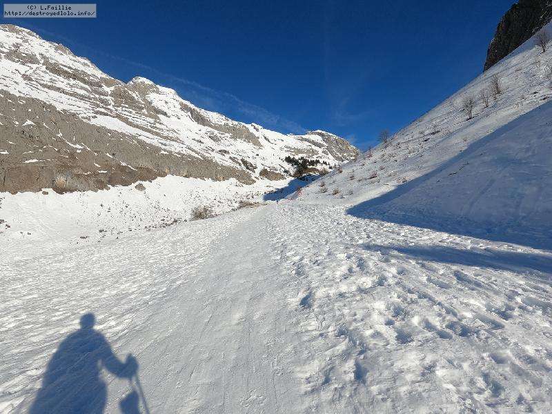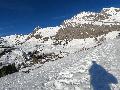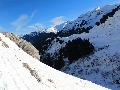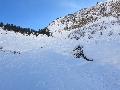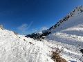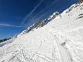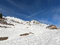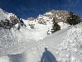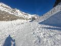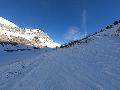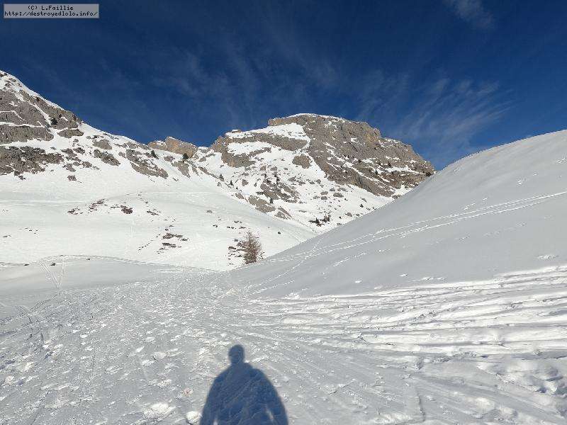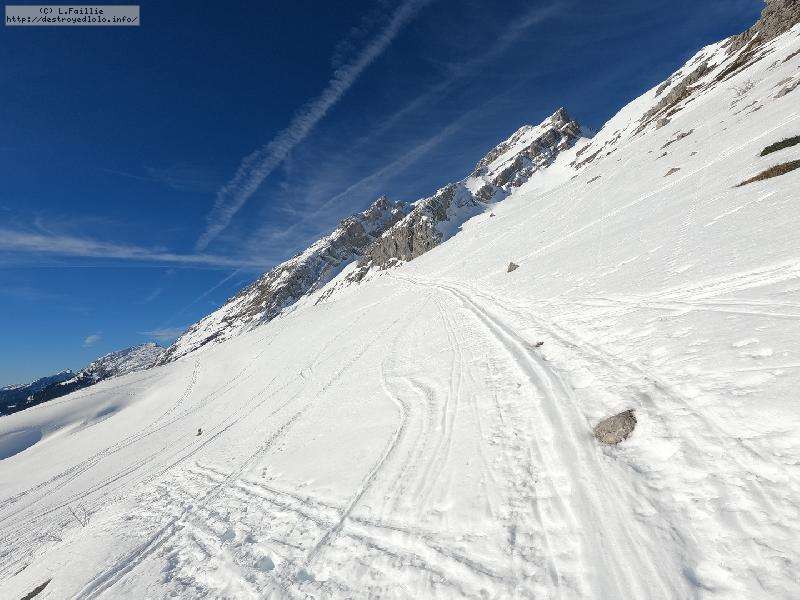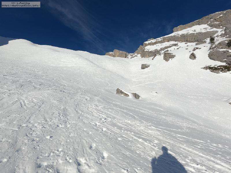 Malheureusement, le dernier raidillon aura raison de ma hanche : il faut y faire des conversions à 180° ... ce que je ne peux plus faire depuis ma fracture du col du fémur. Il aurait été préférable de passer par la combe à gauche, plus douce, mais ... pas confiance dans les coulées (surtout que je suis maintenant solo ). Ma rando s'arrête là.