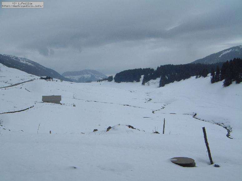 On débouche sur un grand plateau de pâturages dégagé : le « Champ Laitier ». C'est le point le plus bas de la rando avec ses 1350m. Prendre tout droit en direction du sentier qui serpente le long de la pente d'en face. On le suivra en prenant à gauche.