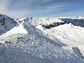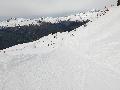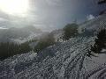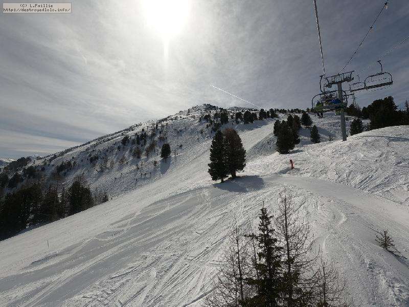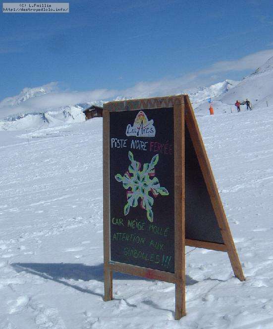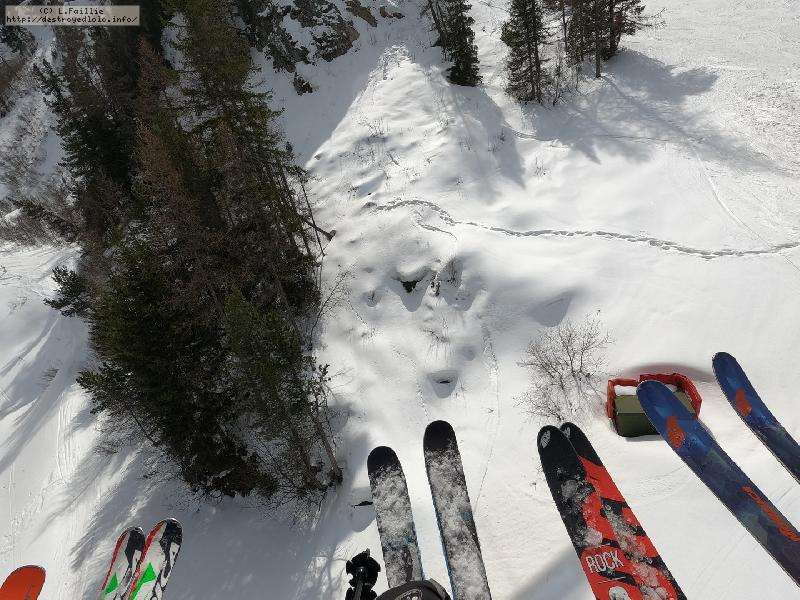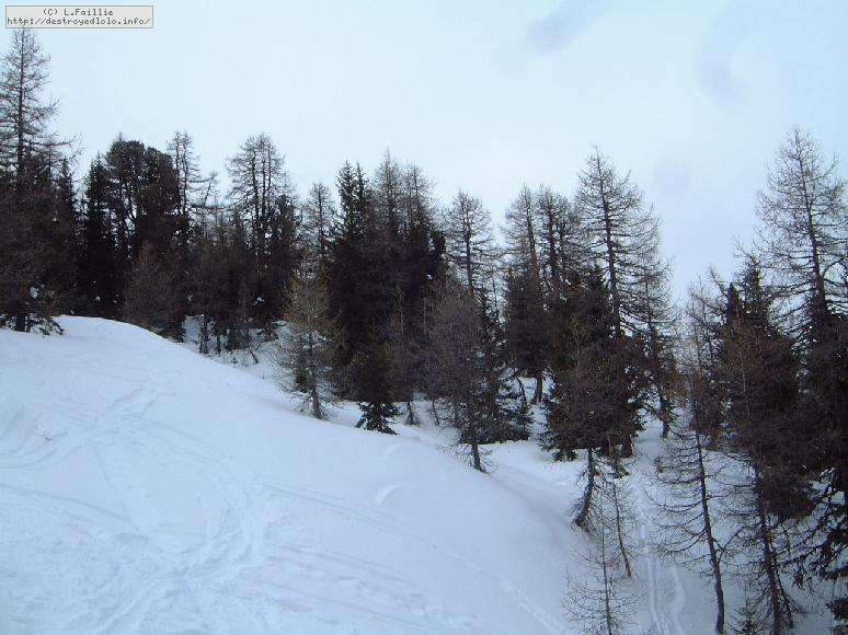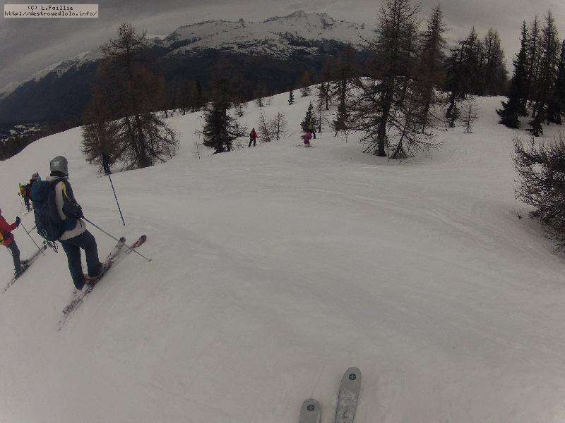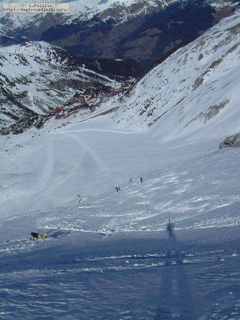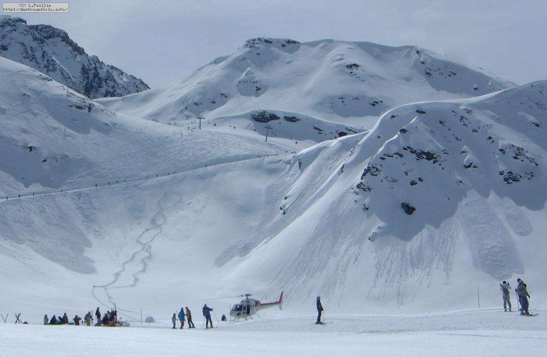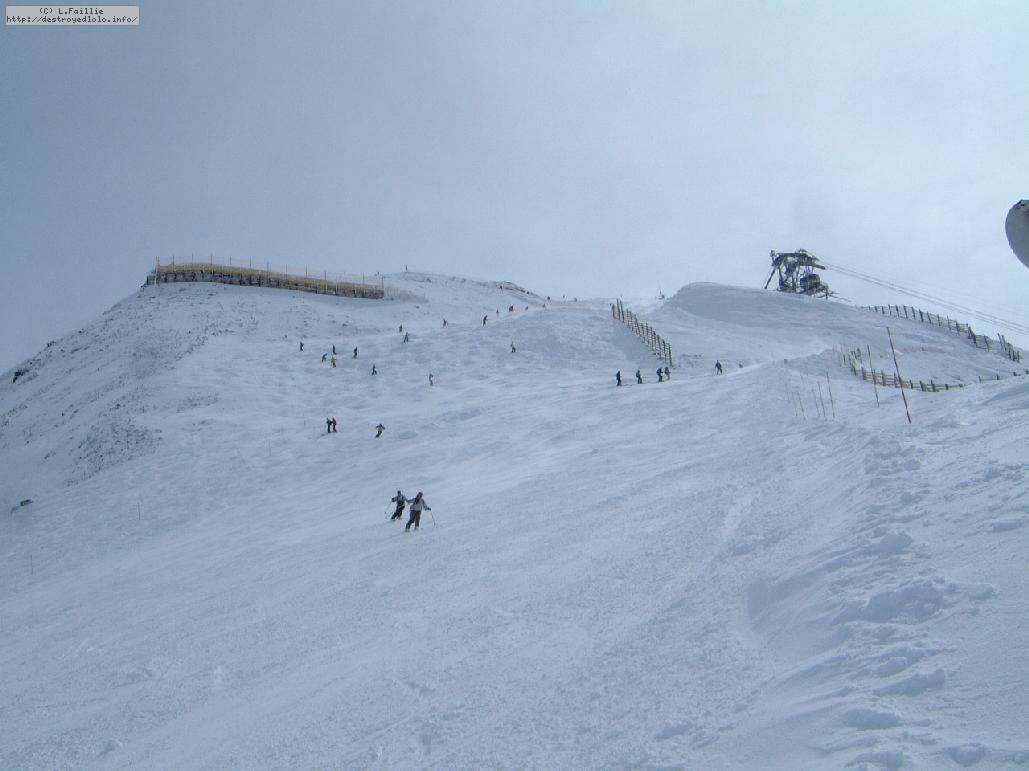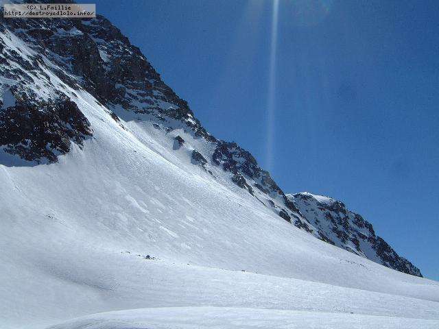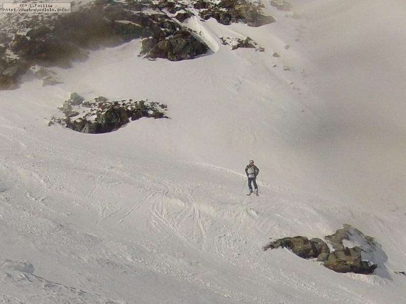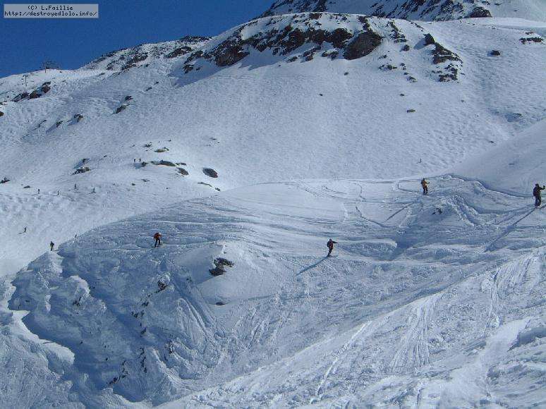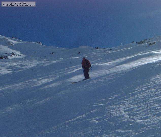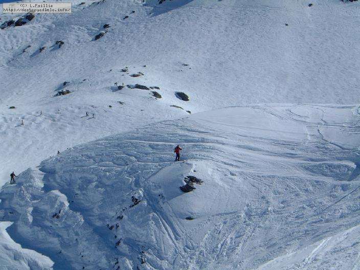 Le haut de l'aiguille rouge est très venteux et super exposé au soleil ce qui fait qu'une coulée arrive jusque sur la piste : impossible de faire seconde descente à cause des risques d'avalanche.