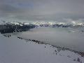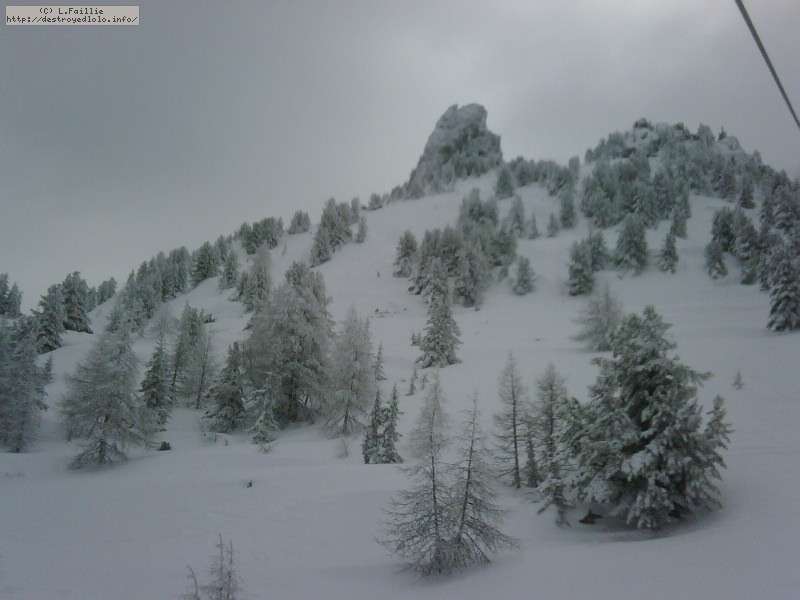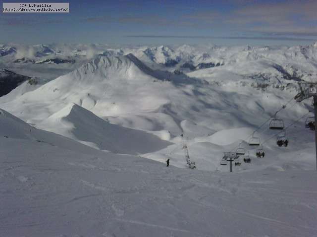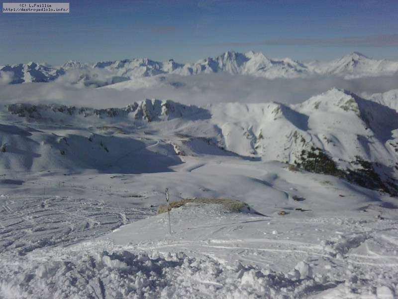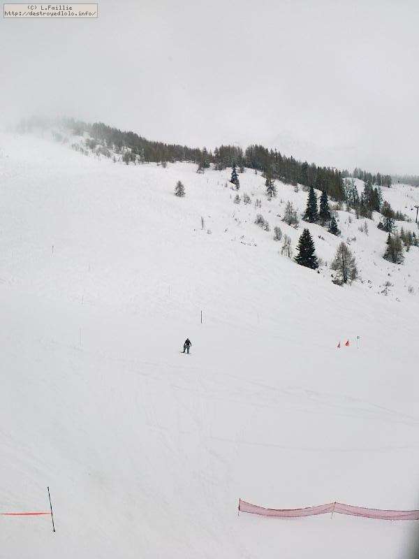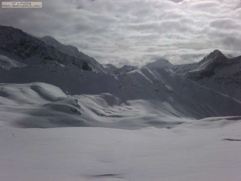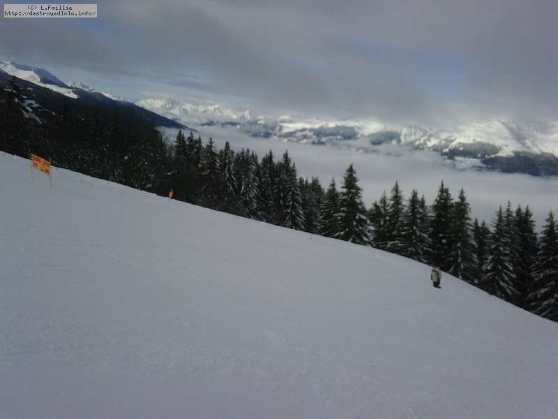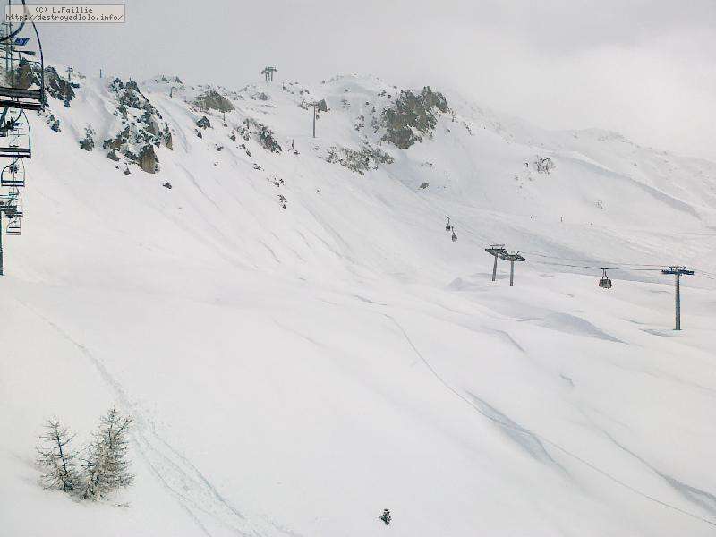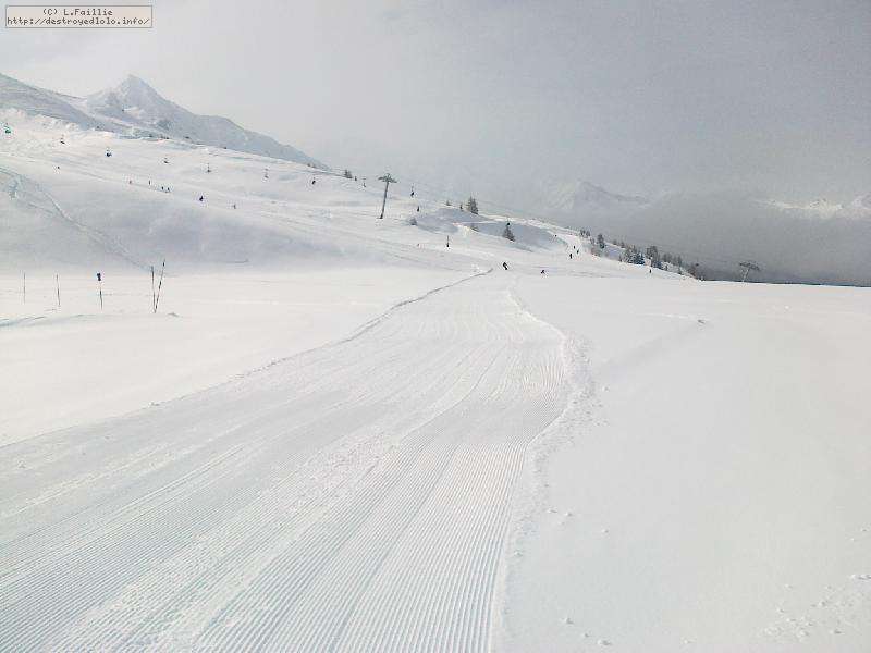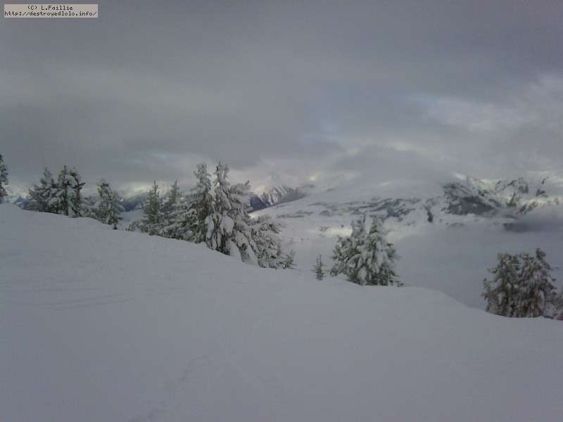 Il neige, il neige, il neige ... Tellement de neige que l'Aiguille rouge restera fermée. Mais quelle peuf ! Et le plafond de nuages n'est pas très épais donc on a une bonne visibilité : en résumé, excellente journée.