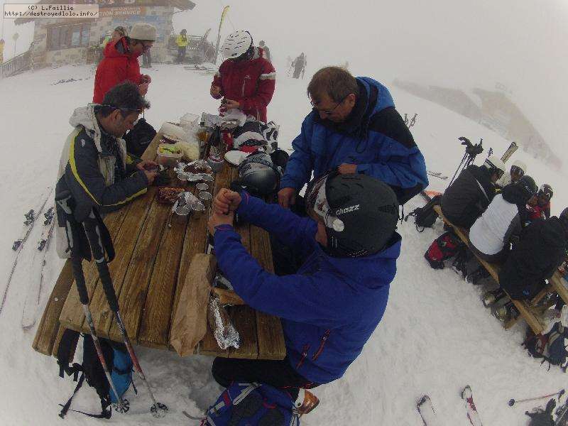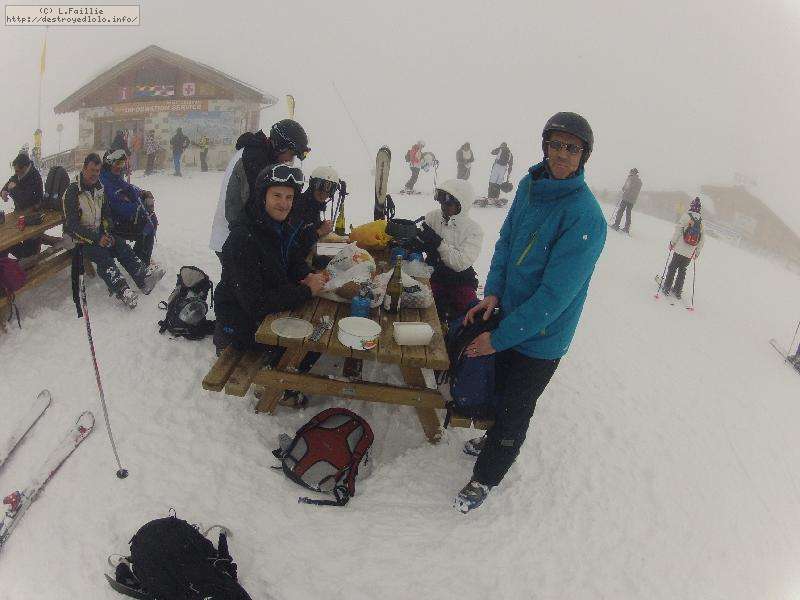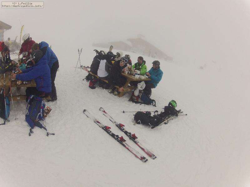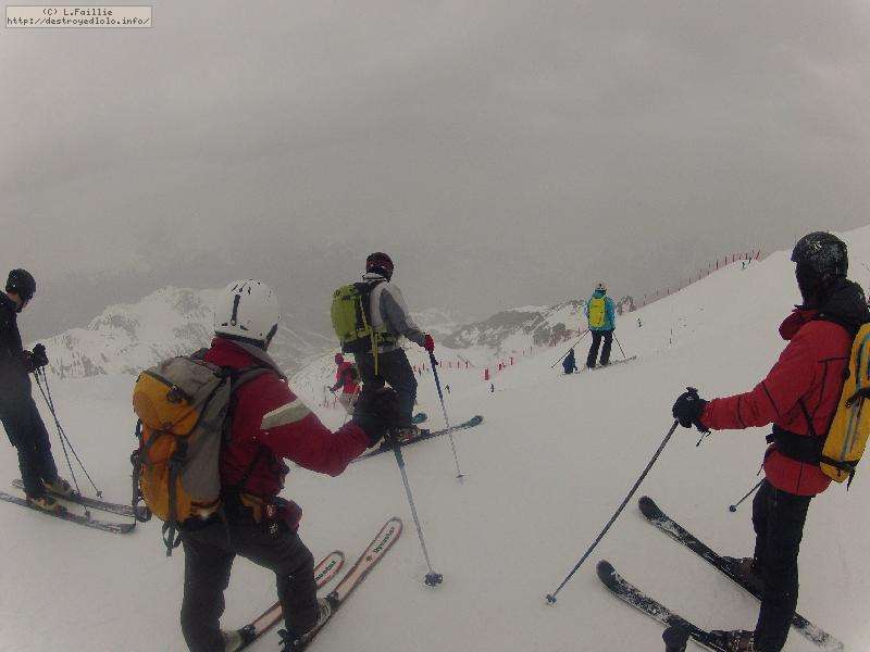 Il faut avouer que ça partait vraiment mal : nuages bas et même quelques goutes ... et en plus, nos partenaires, le ski club Dasault nous monte jusqu'à Arc 2000 (quelle perte de temps !).