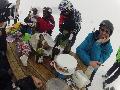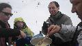 Heureusement, après la pause bouffe, la neige se transforme et l'ambiance se décrispe.