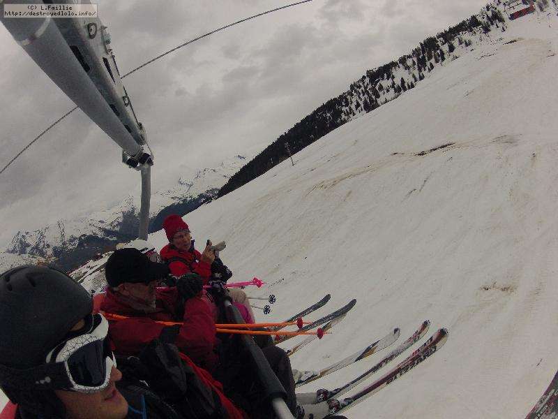Mention spéciale pour tatie Brigitte qui pert un gant et nous oblige à reprendre la piste noire de la Corborciére. A la remonté, le télésiège tombe en panne et nous voilà bloqué pour 20 minutes : étoile des neiges ...