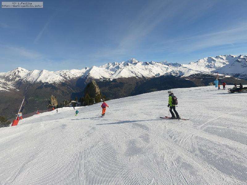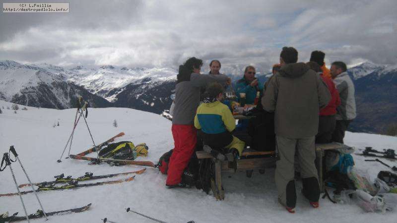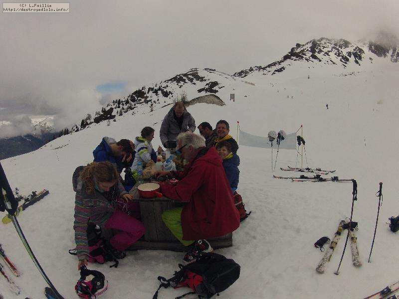 A cause du redoux de ces derniers jours, la neige est bien molle dés le matin. Mais qu'importe, le soleil est là pour notre sortie annuelle aux Arcs. Bonne glisse et grand beau temps, que demander de plus.