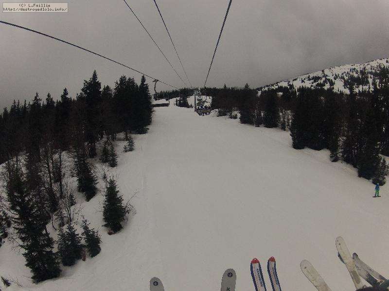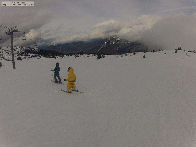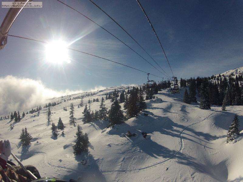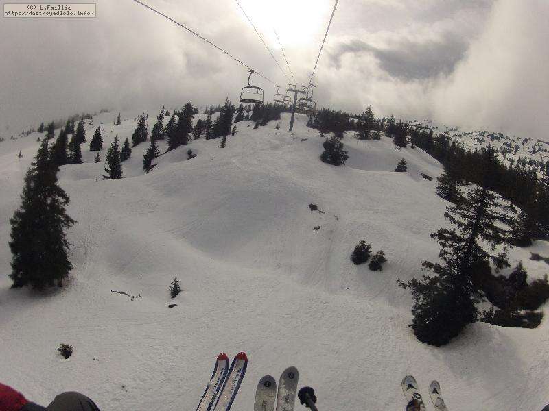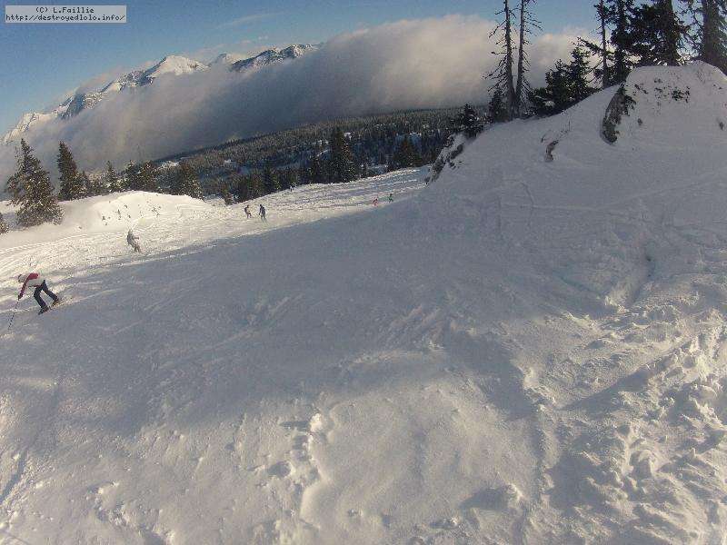 On y retourne l'aprèm pour faire la noire, les rouges et surtout du hors-piste sous les sièges : alternance de pluie et de soleil.