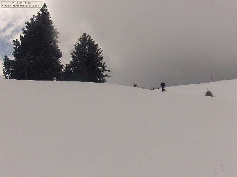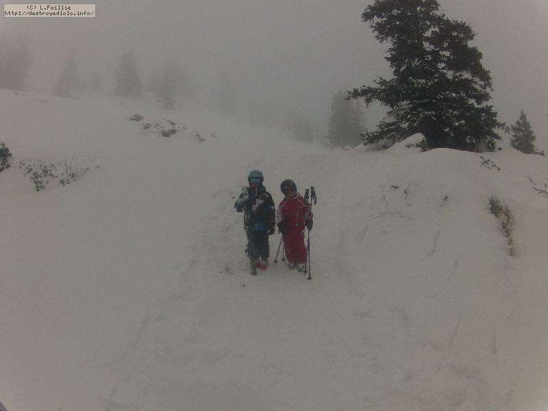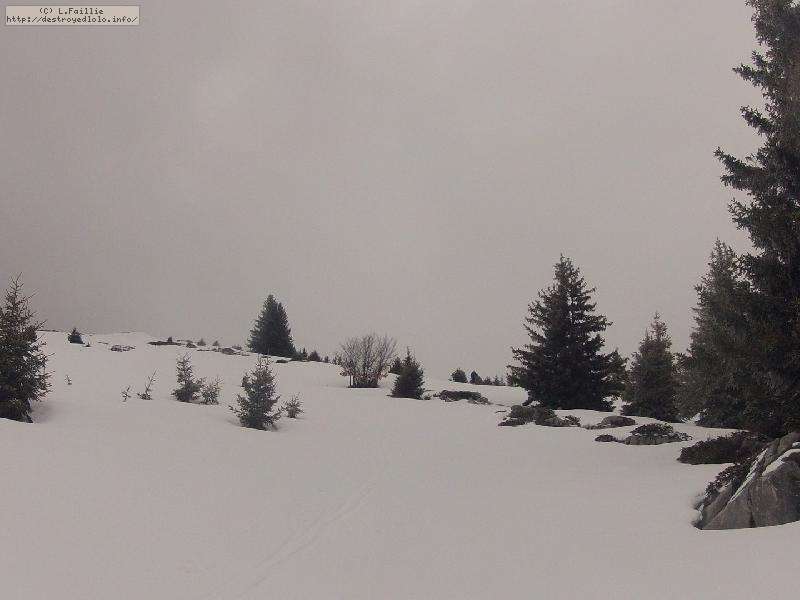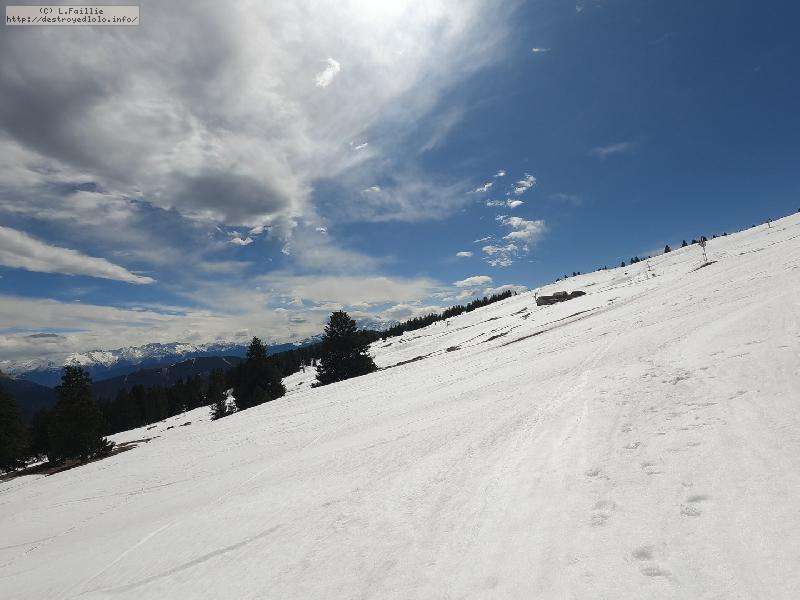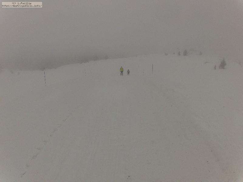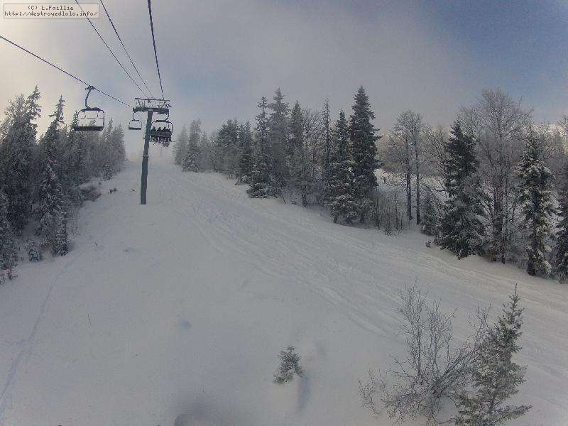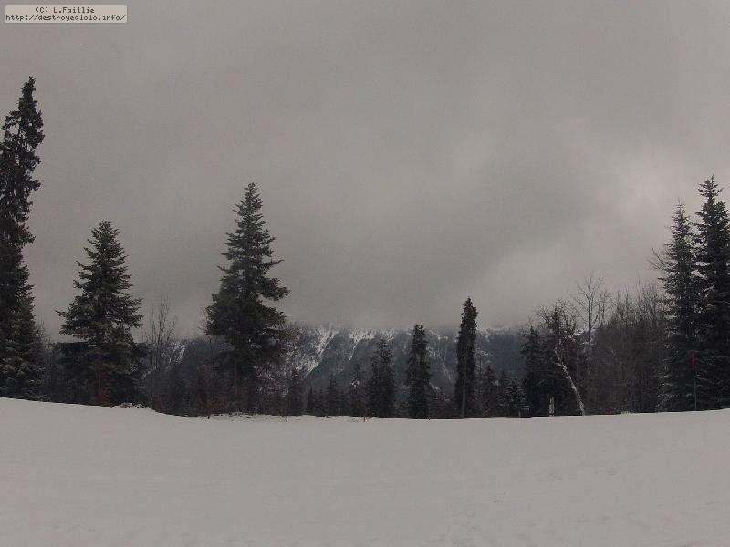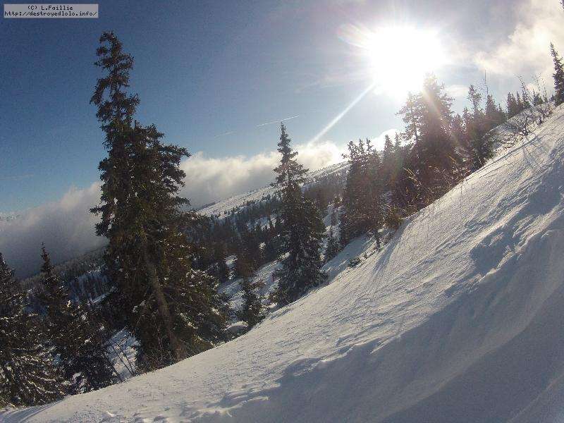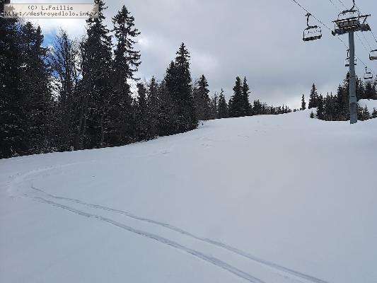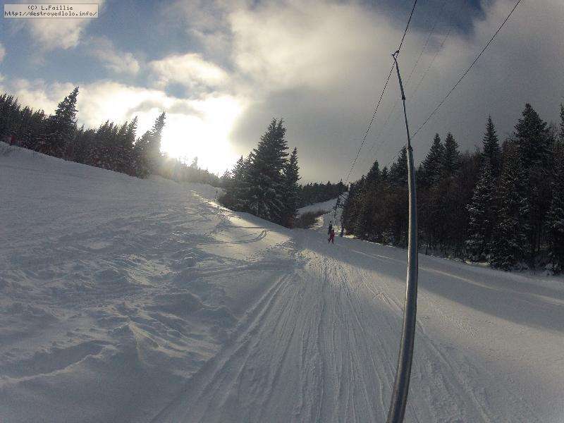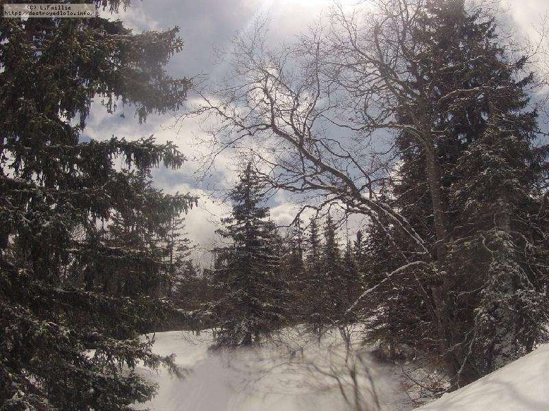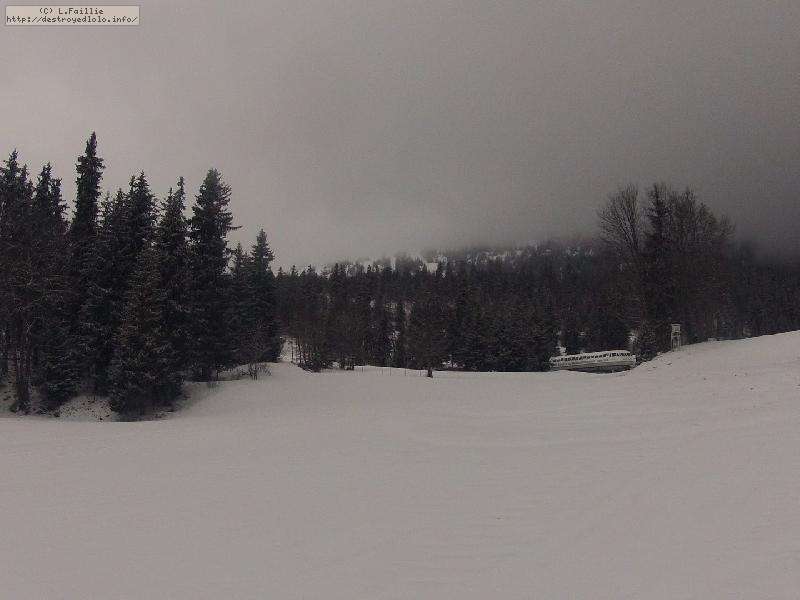 Au niveau de la "station", ca devient vraiment très limite (1ere photo), mais c'est vraiment le seul endroit. Mais après 50 ou 100m, la couche sur piste devient plus que correcte, et a peu prêt à 1/3 de la monté, on peut même s’aventurer dans les sapins : franchement inespérés.