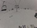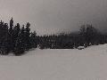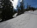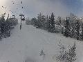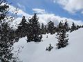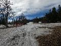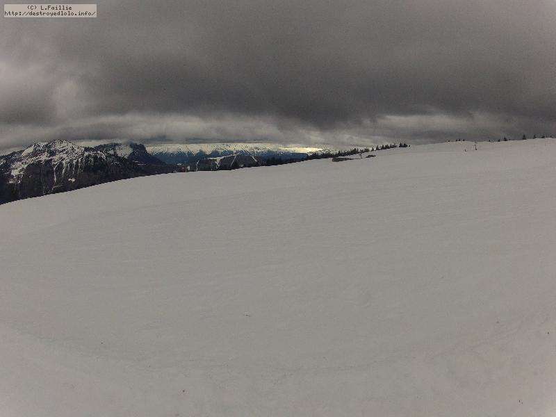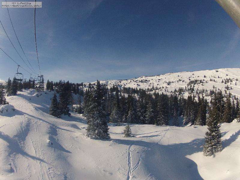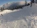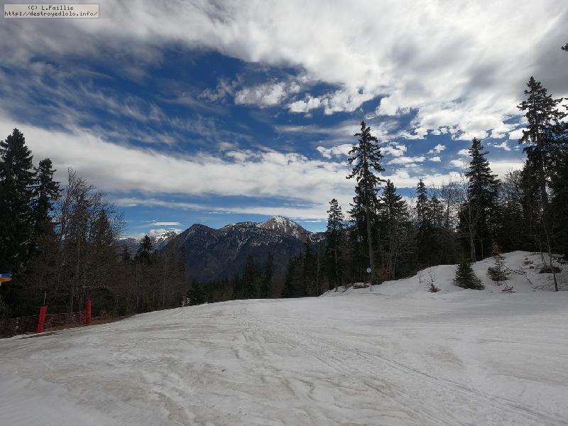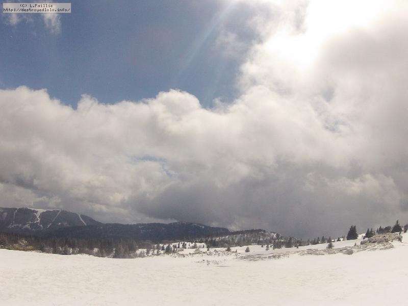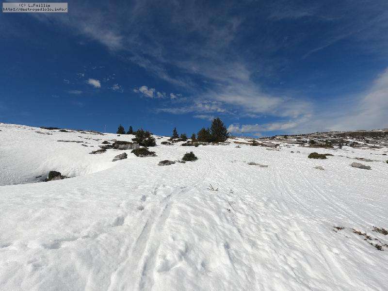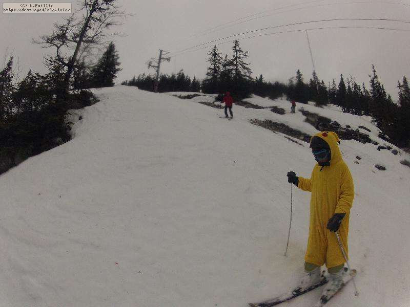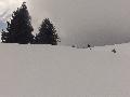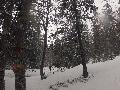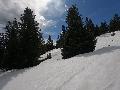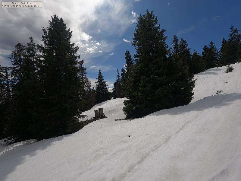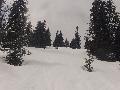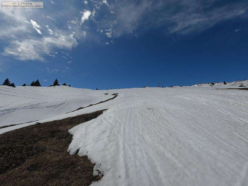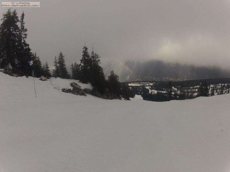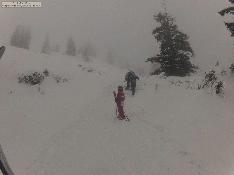 Au niveau de la "station", ca devient vraiment très limite (1ere photo), mais c'est vraiment le seul endroit. Mais après 50 ou 100m, la couche sur piste devient plus que correcte, et a peu prêt à 1/3 de la monté, on peut même s’aventurer dans les sapins : franchement inespérés.