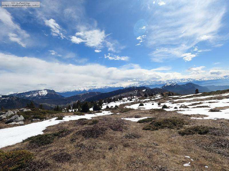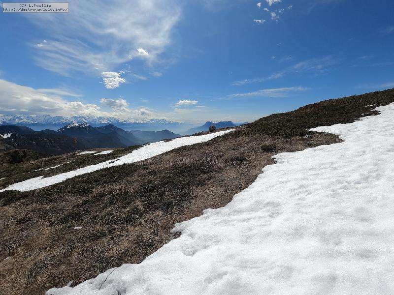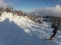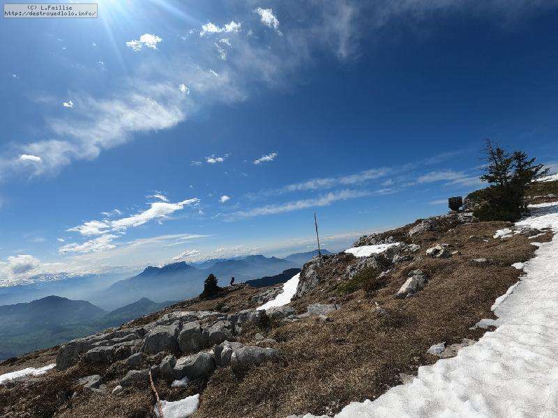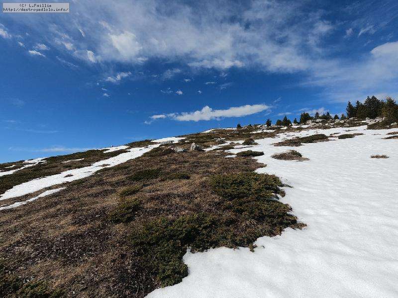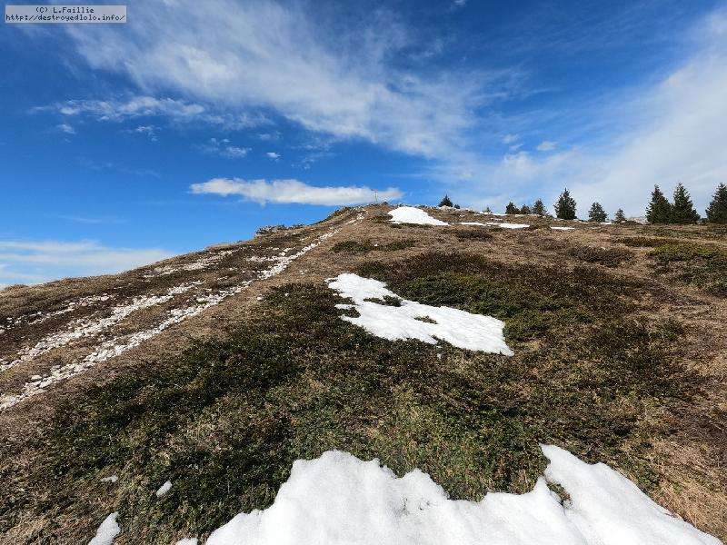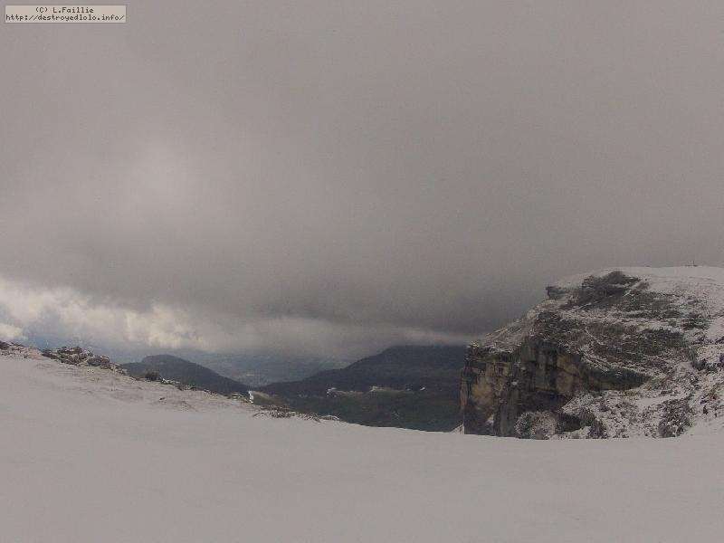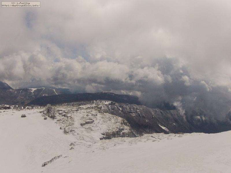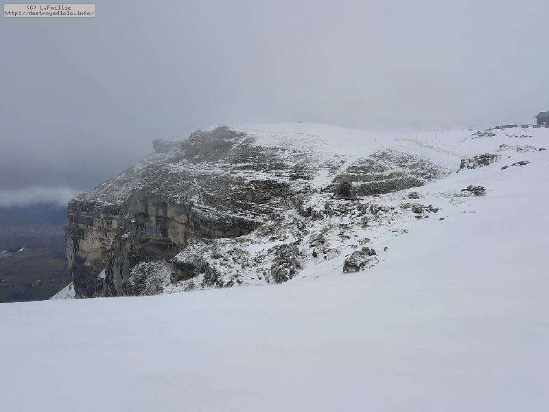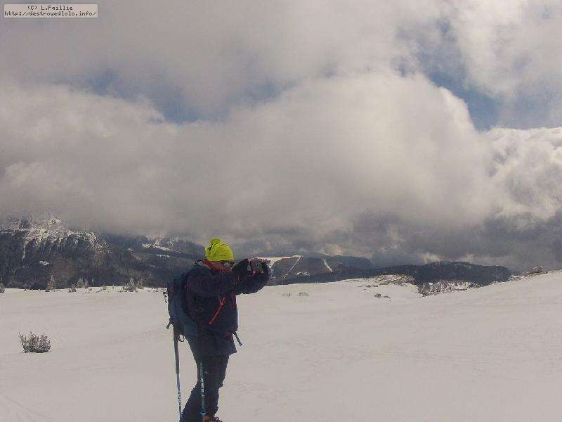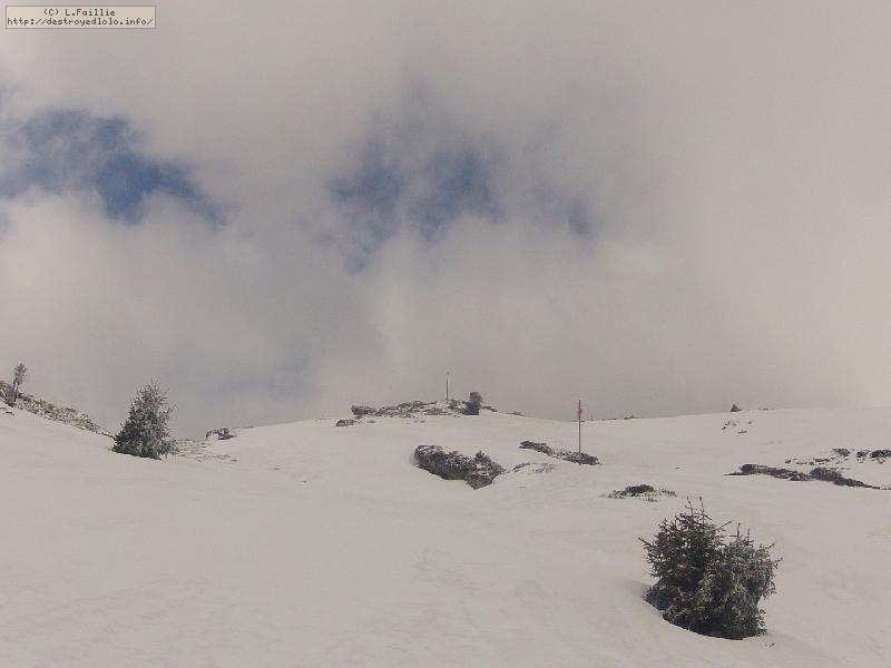 Arrivé au sommet, les flocons laissent place à BEAUCOUP de vent ... et même parfois au soleil entre 2 nuages.