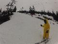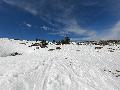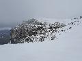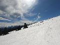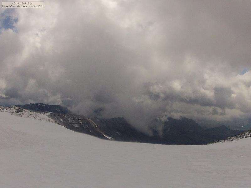 La descente se fera par les pistes ... vierges : la glace fait qu'il n'y a pas de requins mais les quelques centimètres de fraiches sont que la glisse est plaisante.