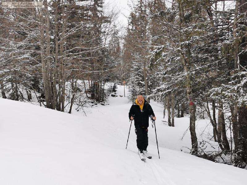 S'ajoute au fil de la journée le brouillard et les nuages ... la journée se finira même sous les flocons. Mais pas besoin d'y voir grand-chose dans les champs de bosses : la piste du Grand Tétras, non damée, sera un joli terrain de jeux ... avec des cailloux trop présent sur le bas. L'apothéose spatulaire sera pour la noire du Lynx : Excellentissime !!!