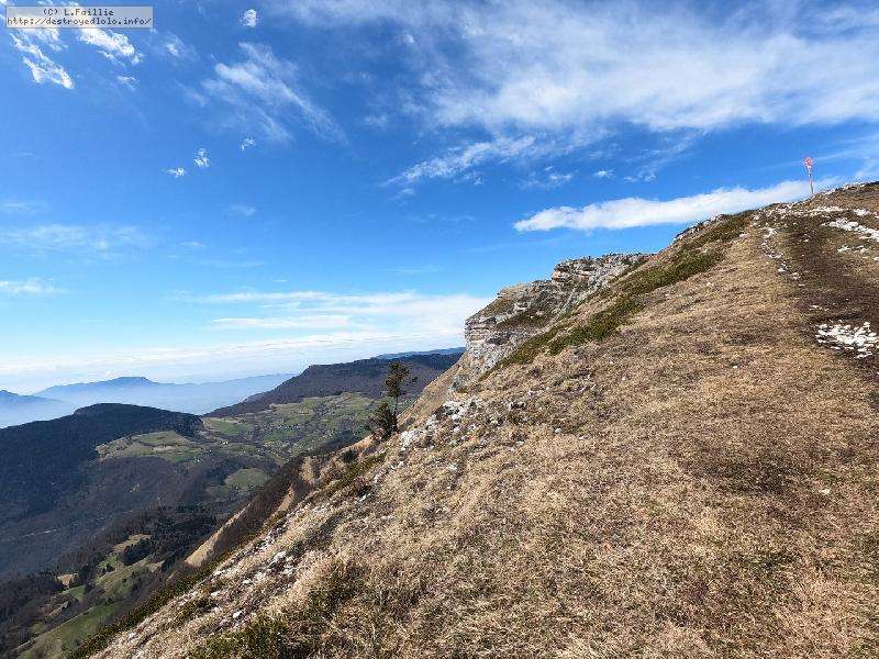 Mais mon erreur a été de vraiment vouloir longer la falaise car là ... c'est tapis vert. Pas grave, le paysage est magnifique mais je m'éloigne quand même rapidement car bon, porter, bof bof bof, quand à 10m, ca passe en ski.