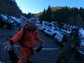 La météo annonce un temps ... très moyen avec de la neige et du vent. Mais l'arrivée fait peur avec pas un pet de neige jusqu'à l'intermédiaire de l'Olympique où nous posons le car.
