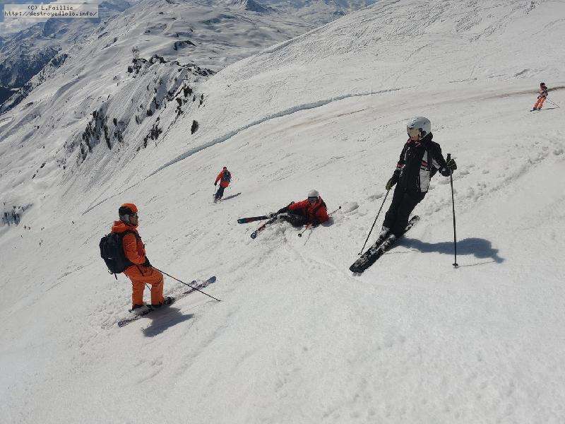 Malgré ce que l'on pourrait croire en regardant les photos, en hors piste, ce qui reste de "profonde" est passablement crouté. Mais comme tout est tracé, on trouvera son bonheur dans la trafolle, souvent transformée en champs de bosses. Et là, c'est vraiment LE PIED !