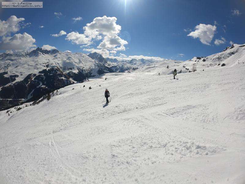 Direction Saulire ... bon, exposé au sud : pistes miroirs et hors-pistes cartons : berk !
