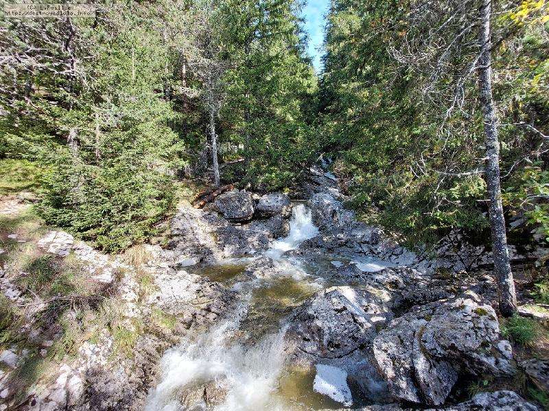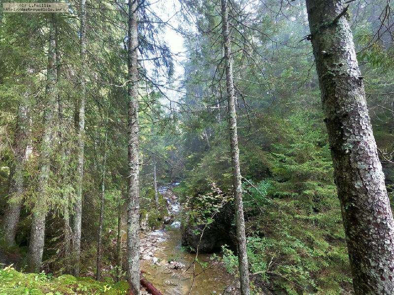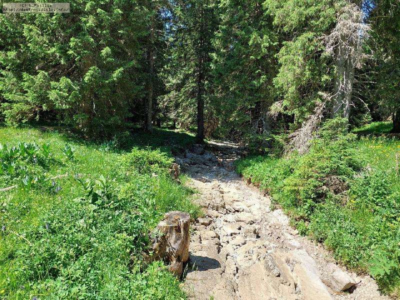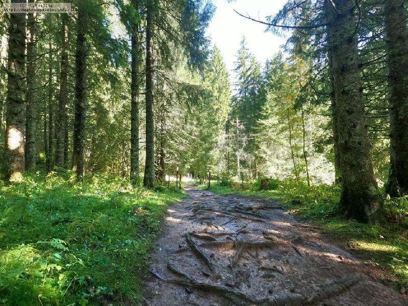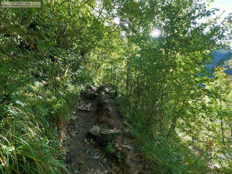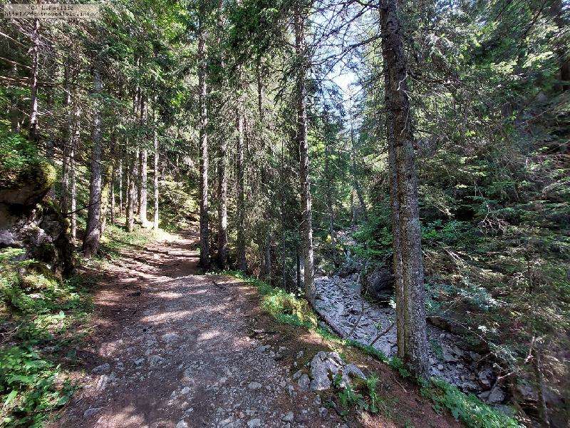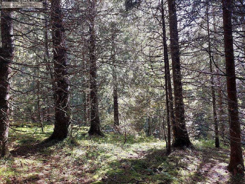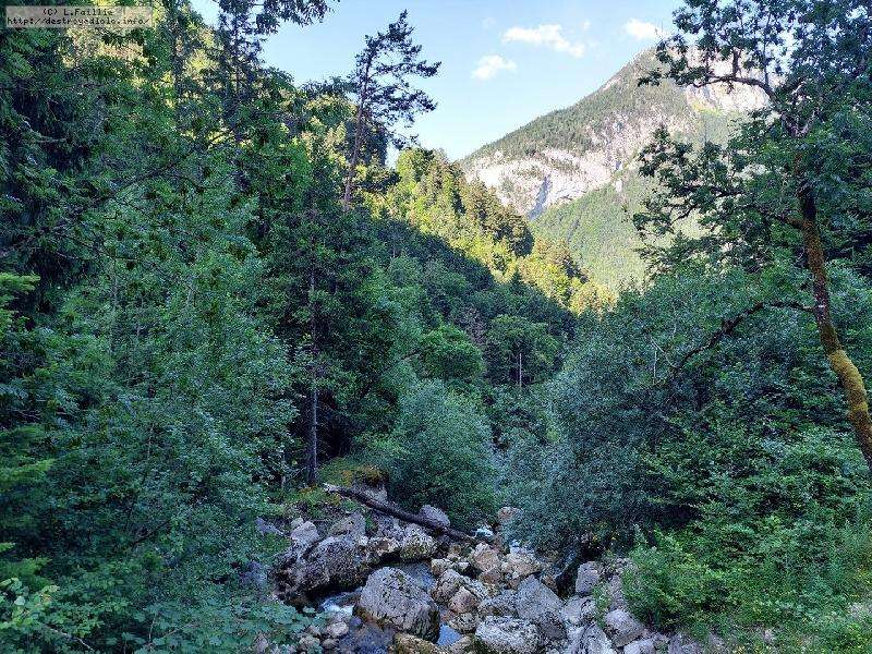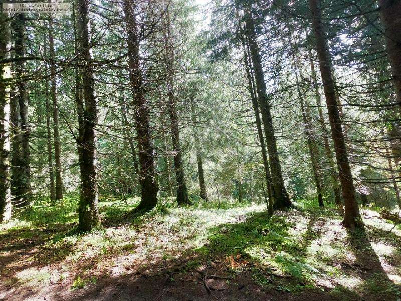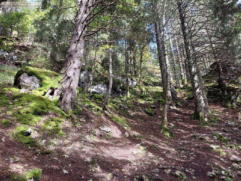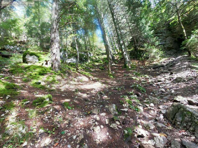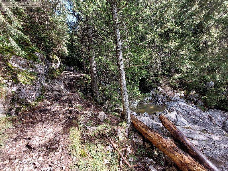 Le sentier longe le ruisseau à travers la foret, quasiment en terrain plat.