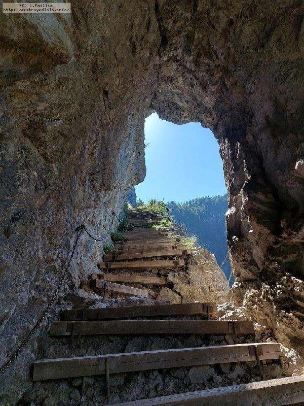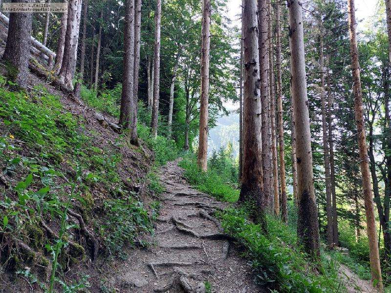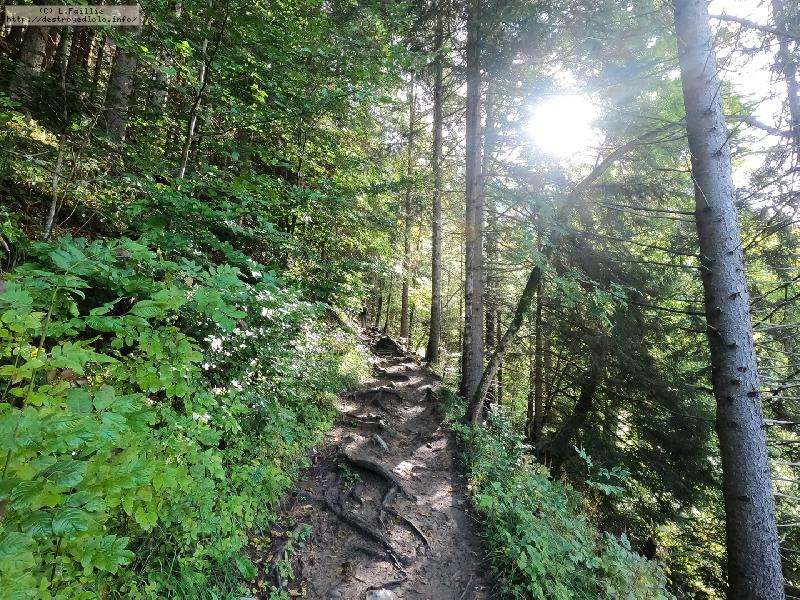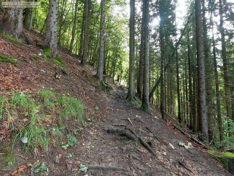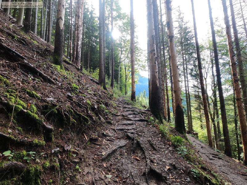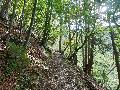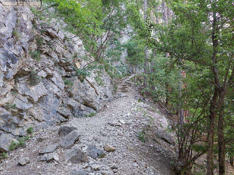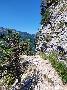 On attaque directement dans le dur : ça grimpe dur à travers les bois avant que le sentier ne soit carrément creusé dans le rocher. Si des marches et des câbles sécurisent le passage, reste que le rocher est très glissant s'il est mouillé. On évitera donc les jours de pluie et surtout de neige.