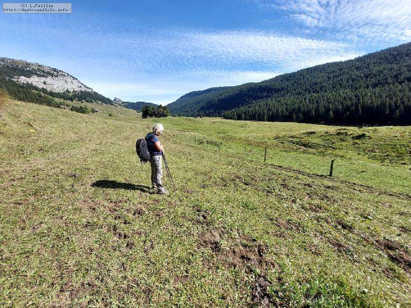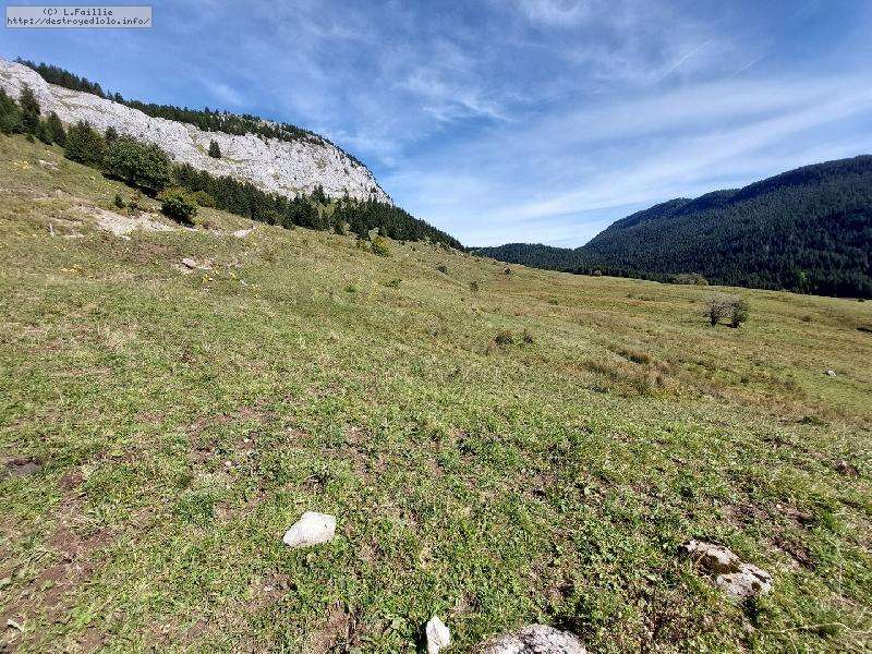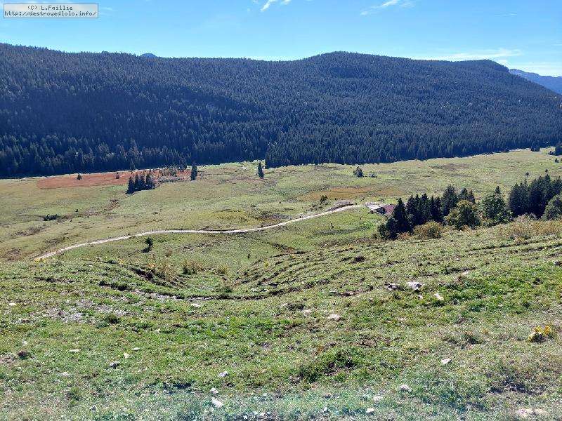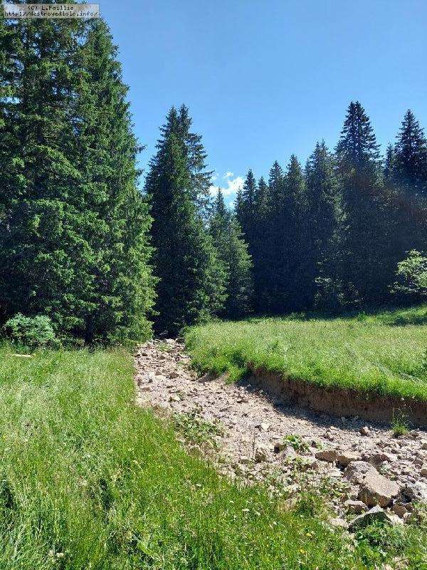 Sur le bas, je tente de bifurquer vers "la source". Mais en fait de source, c'est un sentier qui rejoint les Champs Laitiers par le bas et d'après la carte, si source il y a, elle est de l'autre côté du plateau.