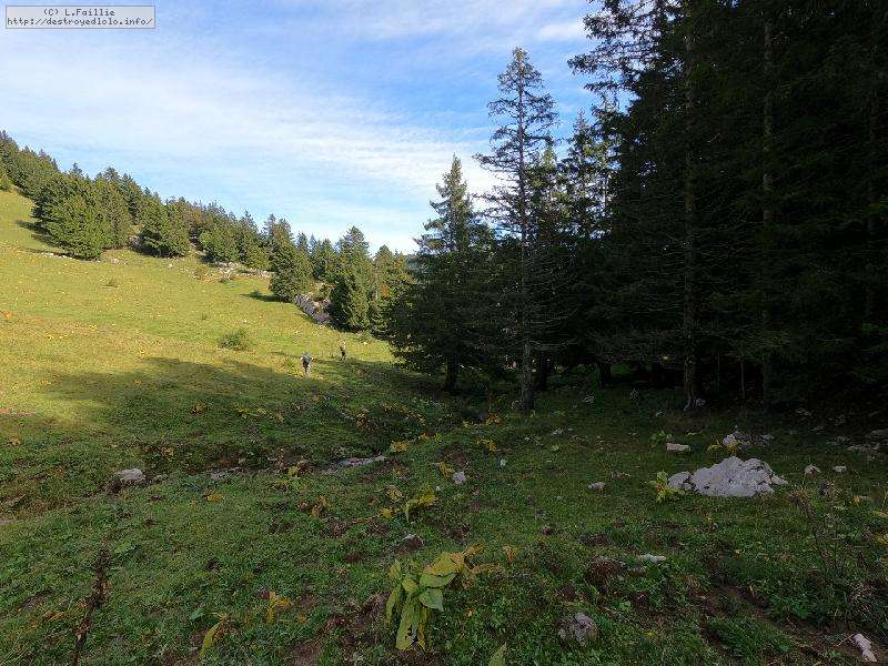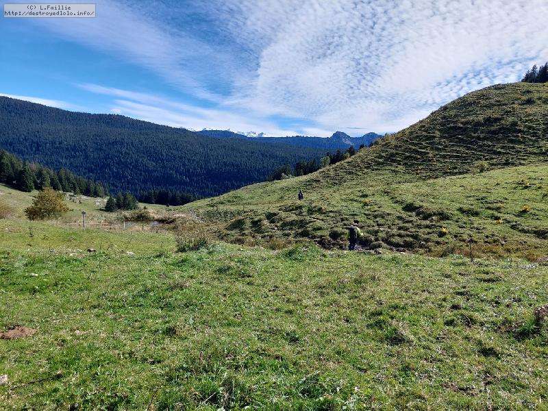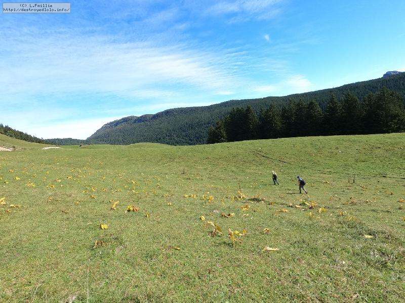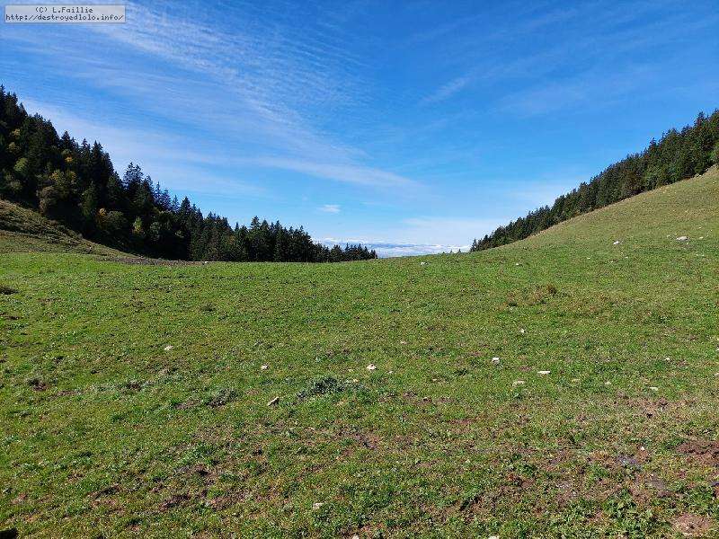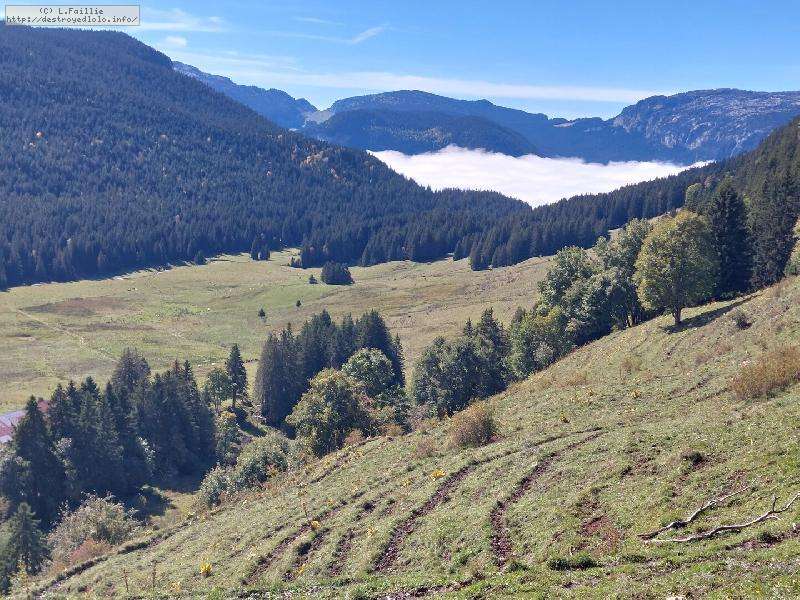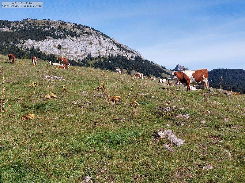 Départ : depuis la route qui monte au plateau de Glières depuis Thorens, dépasser Usillon et le Nant-Sec : se garer (où l'on peut) pas loin du pont et de l'embranchement qui mène à un dépôt. Précis, n'est-ce pas ? De toute façon, vu le monde, difficile de le louper ... et quand on parle de monde, ce 29 septembre ne fera pas exception : nous serons loin d'être seul ! Et ce n'est pas un mal vu que c'est un jour de chasse.