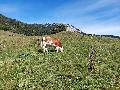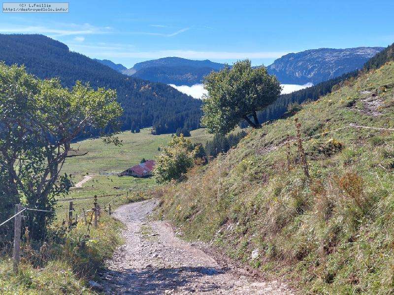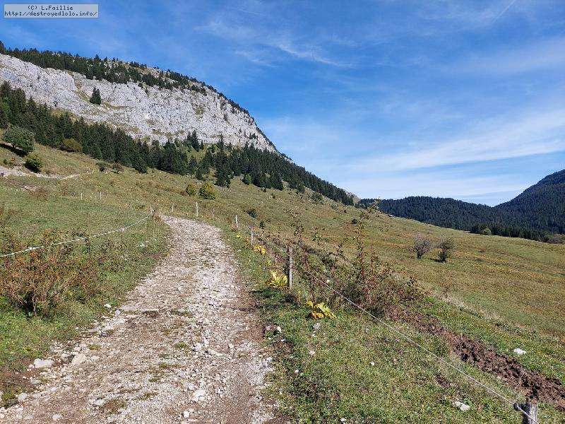 Une fois la ferme passée, on bifurque sur la gauche en direction de notre objectif : le col du Landron. Ça redevient plus pentu.
