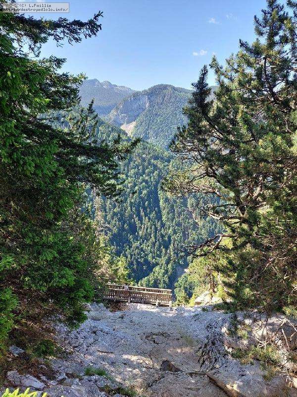 À son sommet, le fameux "Belvédère" marque la fin de la partie ardue et offre de belles vues sur la vallée et sur les cascades.