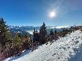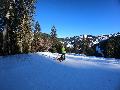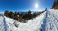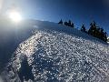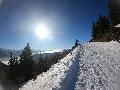... mais soleil au sommet et enfin possible de sortir des pistes pour éviter les derniers gros redillons. Si la neige est toujours bien verglacée, elle accroche quand même le minimum requis.